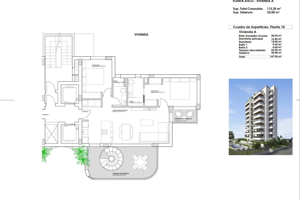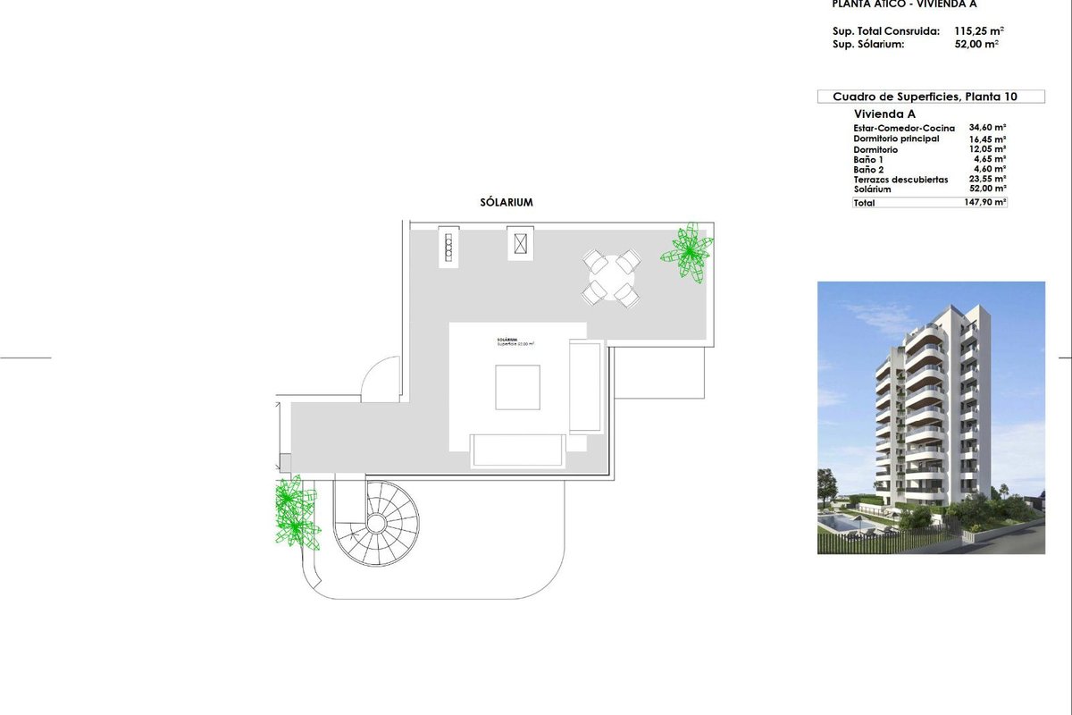 Penthouse for sale in Guardamar Del Segura, with 148 m2, 2 rooms and 2 bathrooms, Swimming pool, Garage, Storage room, Lift, Air conditioning and Heating Central.