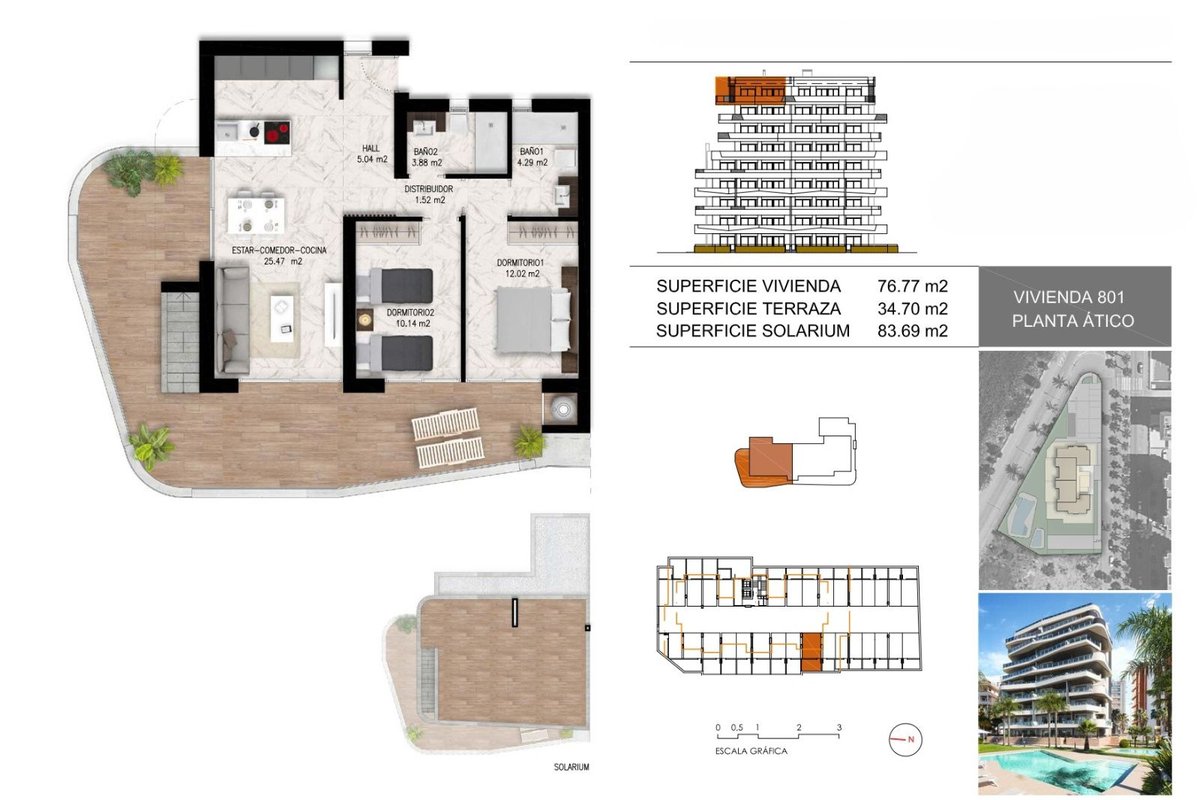 Penthouse for sale in Guardamar Del Segura, with 199 m2, 2 rooms and 2 bathrooms, Swimming pool, Garage, Storage room, Lift, Furnished and Air conditioning.