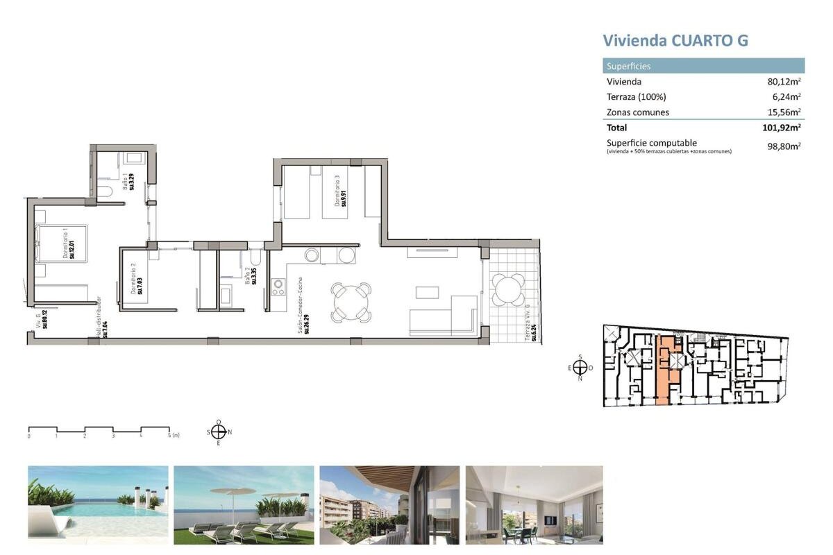 NEW BUILD RESIDENTIAL IN GUARDAMAR DEL SEGURA New Build residential of apartments and penthouses in Guardamar del Segura. This outstanding building is the perfect choice thanks to its proximity to the beach and a wide range of services. Its facilities will include a swimming pool and rooftop solarium, providing a space for residents to relax and enjoy. Modern properties with 2 and 3 bedrooms, 2 bathrooms, a bright living-dining room with integrated kitchen and a cosy terrace. All properties will be equipped with air conditioning and home automation, allowing residents to control and automate various aspects of the home, providing comfort and energy efficiency. The kitchen will feature high quality appliances, including oven, dishwasher, fridge-freezer, extractor hood and induction hob, ensuring a functional and modern space for cooking and enjoying meals with company. In addition, there is the option to purchase a parking space and storage room in the same building, providing greater convenience and storage space for residents. Residential is in a privileged location, close to the beach and surrounded by a wide variety of services and amenities, such as restaurants, shops, supermarkets and leisure areas. Guardamar del Segura, known for its beautiful fine sandy beaches and natural environment, offers a quiet and relaxed lifestyle, without renouncing the necessary facilities within easy reach.