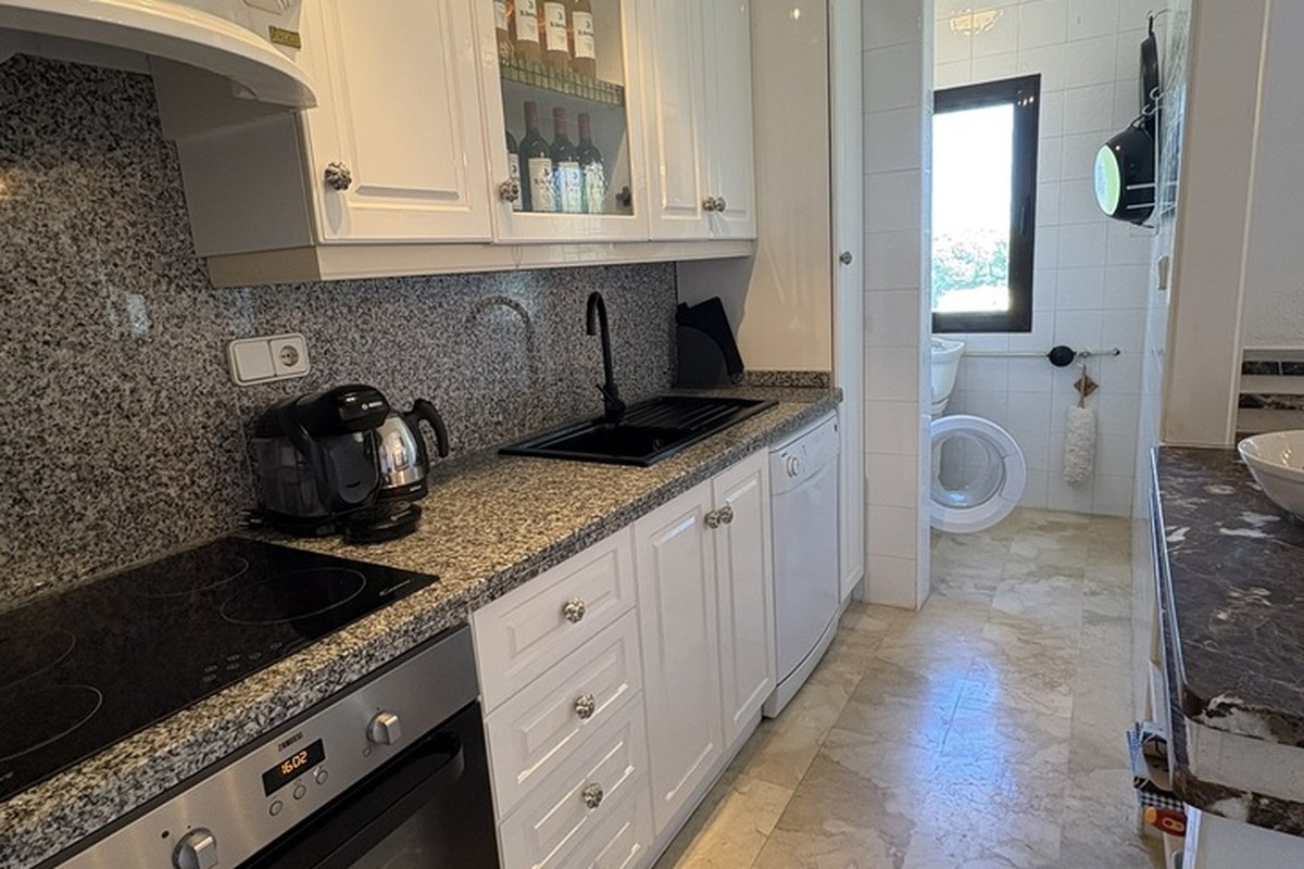 This stunning 3 bedroom, 2 bathroom 130m2 duplex apartment offers a truly unique opportunity to own this superb home on the much sought after urbanisation of Las Ramblas on the Orihuela Costa.A rare first floor ‘duplex’ style penthouse apartment, this fabulous property spans two storeys and occupies an enviable position overlooking the beautiful communal pool and manicured gardens, enjoying spectacular countryside views across the costa. Recently refurbished, this well appointed, part furnished apartment offers the discerning buyer a touch of luxury with marble floors and air conditioning throughout and a location which is second to none – this property really must be seen to be fully appreciated.On the first floor, the entrance opens onto a bright and spacious living/dining room with a fully equipped galley style open-plan kitchen combining to create a real sense of space and openness. There’s also a lovely natural open fireplace for those cosy evenings when the sun’s gone down. A large family bathroom, two large double bedrooms and a really useful under-stairs storage room offering that all important hiding place for the essentials complete the first floor accommodation. The living/dining area offers a great space for entertaining with the added benefit of full-height patio doors which lead out to a large 12m2 terrace enjoying panoramic views over the gardens, communal swimming pool and across the Orihuela countryside. The large BBQ and dining area make this the perfect spot to enjoy your cheeky evening vino and tapas whilst soaking in those views.Both of the first floor bedrooms benefit from full height wardrobes and plentiful space for guests, whilst climbing the stairs takes you to the superb second floor master bedroom suite. This expansive double bedroom area enjoys plenty of storage space with wardrobes running the full length of the room and a surprisingly large luxury en-suite bathroom off the main accommodation. However the real ‘wow factor’ of this exceptional space becomes clear when you wander out through the large double patio doors onto the incredible rooftop solarium. Measuring circa 38m2, this sun drenched terrace offers a truly spectacular spot to relax, unwind and enjoy the year-round Spanish sunshine. With plenty of space to accommodate the large bali-style sunbed and dining area, there is also an outdoor shower to cool you down after a day basking in the Costa Blanca sunshine. And then there are those spectacular views…..you could simply never get bored of looking out at that vista.The property also benefits from a private allocated underground parking space and secure lockable storage room.Location, quality and value combine to make this property a truly exceptional prospect for anyone seeking the ultimate home with easy access to all that the Costa Blanca has to offer – walking distance to the best bars, restaurants and shopping and only a few minutes drive from the Mediterranean and those golden beaches – what more could you want?