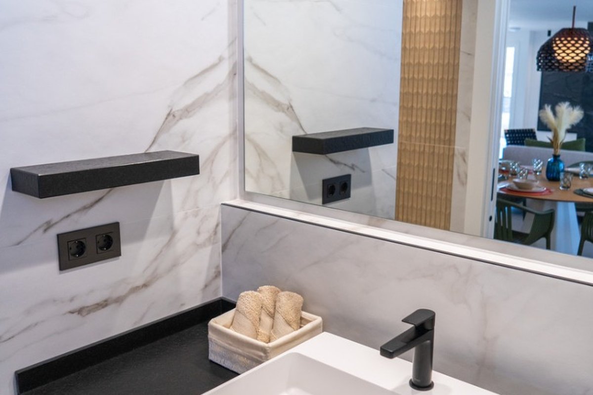 In the heart of La Zenia (Orihuela Costa) lies this luxurious 122 m² apartment that combines privacy, contemporary design, and Mediterranean comfort . Located on the first floor of a building with only two apartments and an elevator , it offers the tranquility of a penthouse with no neighbors above. Its impressive 250 m² private terrace , complete with a barbecue area, covered porch, artificial grass, and ample seating, transforms this home into a true outdoor retreat, ideal for enjoying the sun year-round.