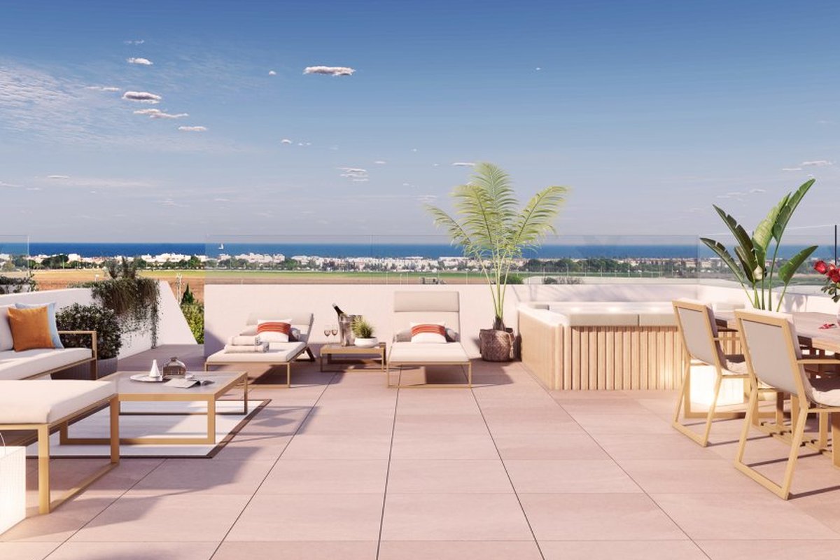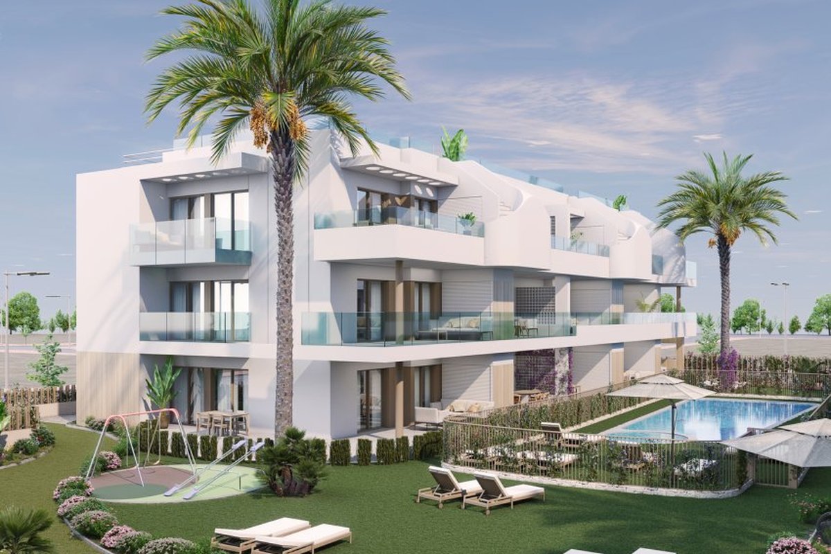 Located in the charming municipality of Pilar de la Horadada, this residential complex offers a variety of housing options to suit different needs and lifestyles. With a total of 53 properties, future residents can choose from apartments, ground-floor units, and penthouses, each designed to provide comfort and functionality. The location is ideal for those seeking a balance between tranquility and accessibility, being just 2 km from the sea, allowing for enjoyment of the Mediterranean coast in minutes. Additionally, the nearest airport is 44 km away, facilitating international travel. The homes are equipped with modern features such as built-in wardrobes and pre-installed air conditioning, ensuring a comfortable environment year-round.OUTDOOR AREASThe exteriors of these properties are designed to maximize enjoyment of the Mediterranean climate. Each home features a terrace, ideal for outdoor relaxation or family meals. Additionally, some types include a private garden, providing extra green space for leisure or gardening. For those seeking panoramic views, the penthouses offer a solarium, perfect for sunbathing or enjoying the surroundings. The distance of just 2 km to the sea allows for enjoyment of the sea breeze and coastal walks at any time.INDOOR AREASThe interiors of the homes are carefully designed to offer a cozy and functional space. Layout options include 2 and 3-bedroom homes, all with 2 bathrooms, providing flexibility for families of different sizes. Ceramic floors add a modern touch and are easy to maintain. The inclusion of a private jacuzzi in some properties adds an element of luxury and relaxation. Additionally, the pre-installation of air conditioning ensures that the homes are prepared to maintain a pleasant temperature year-round.COMMON AREASThe residential complex features various common areas that enrich the living experience of its residents. The landscaped areas offer a green and tranquil environment for walking or relaxing. The communal pool is ideal for cooling off during hot summer days, while the communal jacuzzi provides a space for relaxation and well-being. Additionally, the complex includes a communal garage and parking options, ensuring convenience and security for residents' vehicles.PILAR DE LA HORADADAPilar de la Horadada, on the Costa Blanca, is a coastal town with fine sandy beaches and a tranquil atmosphere. Its coastline, such as Playa de Mil Palmeras, attracts visitors in search of sun and sea, making it a popular tourist destination in summer. Tourism in Pilar de la Horadada focuses on its beaches and water activities, such as snorkelling and scuba diving. Its proximity to areas of interest such as the Salinas de San Pedro Natural Park adds value to its tourist offer. The lifestyle in Pilar de la Horadada is relaxed and sea-oriented. Residents enjoy a quiet life, with a wide gastronomic offer based on fresh fish and Mediterranean dishes. The community values the proximity to the sea and local traditions. Pilar de la Horadada offers a coastal and tranquil atmosphere for those seeking a relaxed life by the Mediterranean Sea on the Costa Blanca.