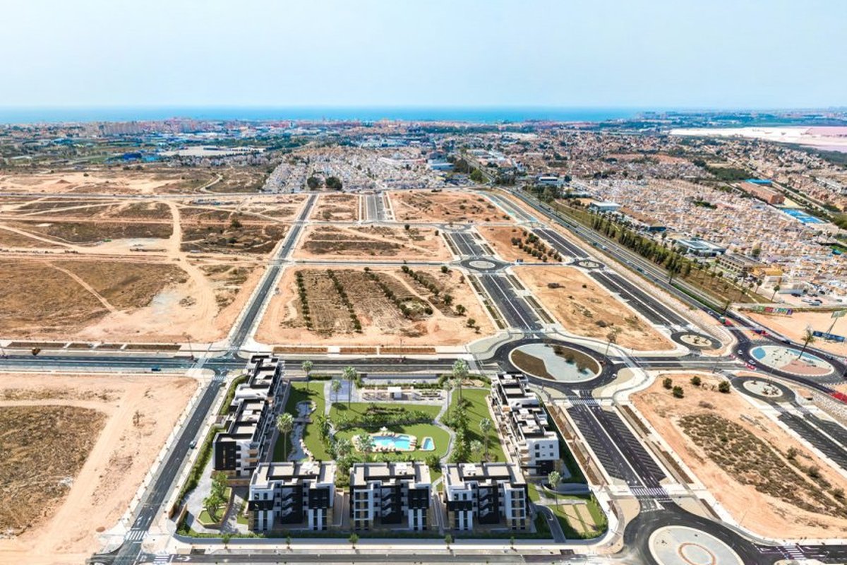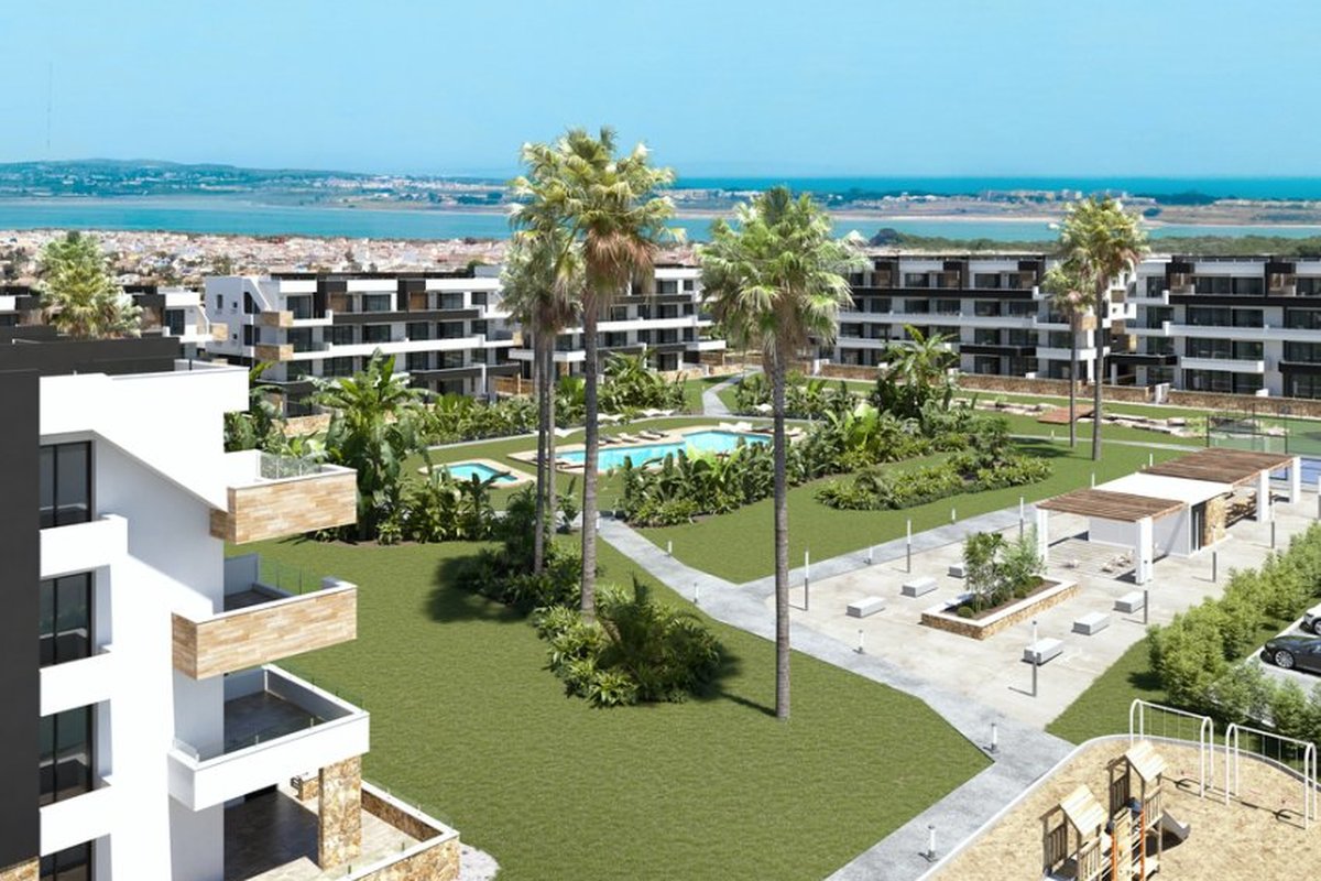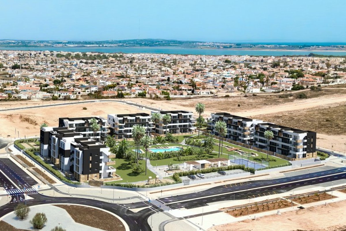 Located in the beautiful town of Torrevieja, this residential complex offers a selection of 80 properties including Apartments, ground-floor units, and Penthouses. The location is ideal for those looking to enjoy the coast, as it is just 5 km from the sea. Additionally, the nearest airport is 44 km away, making access easy for residents and visitors. This residential complex is perfect for those who wish to combine comfort and proximity to essential services, in an environment that offers tranquility and natural beauty.OUTDOOR AREASThe outdoor spaces of this residential complex in Torrevieja are designed to maximize enjoyment of the Mediterranean climate. Each property features a terrace, ideal for outdoor relaxation. Additionally, some types include a solarium, providing extra space for sunbathing or enjoying the views. The proximity to the sea, just 5 km away, allows for coastal walks and water activities. Garage options ensure convenience and security for residents' vehicles.INDOOR AREASThe homes are equipped with modern features that ensure comfort and functionality. Porcelain stoneware floors add a touch of elegance and durability. Electric shutters and included appliances make daily life easier, while air conditioning ensures a pleasant environment year-round. Built-in wardrobes offer efficient storage, and the layout includes two bedrooms and two bathrooms, catering to the needs of different types of families.COMMON AREASThe residential complex features a variety of common areas designed for the enjoyment of all residents. Among them, a community pool stands out, perfect for cooling off during the warm summer days. The landscaped areas offer a green space for strolling or relaxing, while the paddle court is ideal for sports enthusiasts. Additionally, the little ones can enjoy a safe and well-equipped children's playground.TORREVIEJATorrevieja, on the Costa Blanca, is a popular tourist destination known for its wide beaches, Mediterranean climate and vibrant atmosphere. It attracts tourists for its beautiful fine sandy beaches, such as Playa del Cura or Playa de la Mata, ideal for swimming and water sports. Tourism in Torrevieja focuses on its beaches, its lively promenade and its nightlife. It also stands out for its salt lagoon, the Salinas de Torrevieja, known for its therapeutic properties and for being a unique environment. The lifestyle in Torrevieja is dynamic and sea-oriented. Residents and visitors enjoy an active coastal life, taking part in water activities, local festivals and a lively nightlife. Torrevieja offers a vibrant coastal atmosphere for those looking to enjoy the sea, beaches and lively life on the Costa Blanca, fusing beach tourism with a wide range of leisure and entertainment.