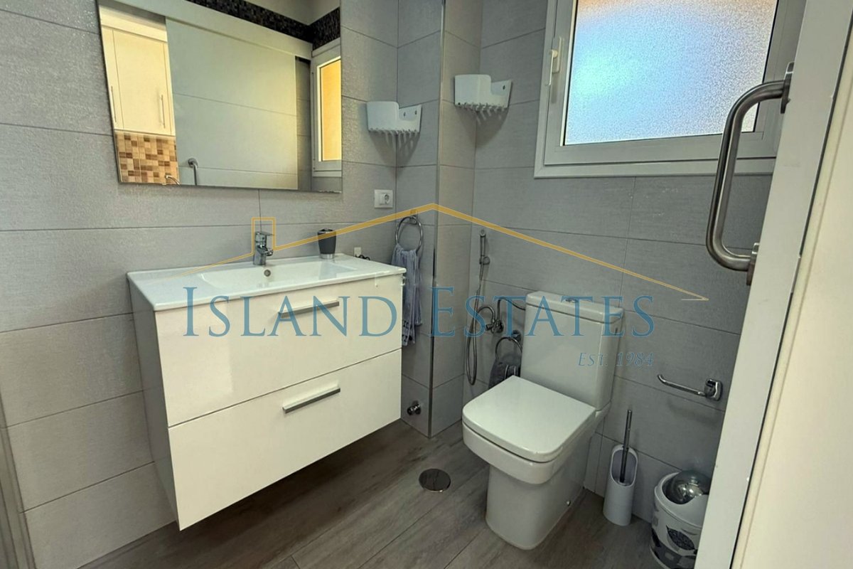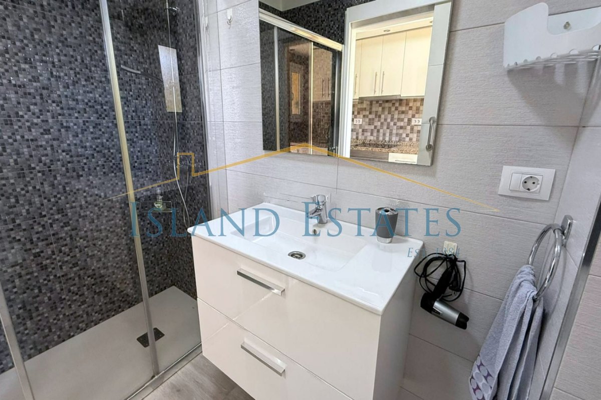 Well presented 1 bedroom ground floor apartment in the popular community of Torres Del Sol. Completely renovated with new electrics, plumbing and a modern laminate floor throughout. When entering there is a full working kitchen, a modern shower room, a living area and then a separate bedroom. There is no outside terrace, however the community has 2 swimming pools. Air conditioning and new double glazing has been installed for your comfort.