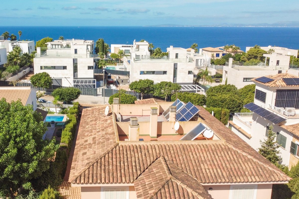 Semi-detached villa with swimming pool, solarium and garage, 4 minutes from the beach and golf course.~This beautiful semi-detached house with a pool, solarium, and garage is ideally located just 4 minutes from the beach and golf course. Built in 2007, the property is in excellent condition and features high-quality finishes.~~The home is distributed across three levels:~Ground Floor: Features a living-dining room, an independent equipped kitchen with a dining area, a room currently used as an office, a utility room, a bathroom, and direct access to the terrace.~First Floor: The sleeping area includes four bedrooms with built-in wardrobes and two en-suite bathrooms. This floor also has a terrace with sea views.~Basement: A two-car garage and a spacious basement provide ample storage and convenience.~