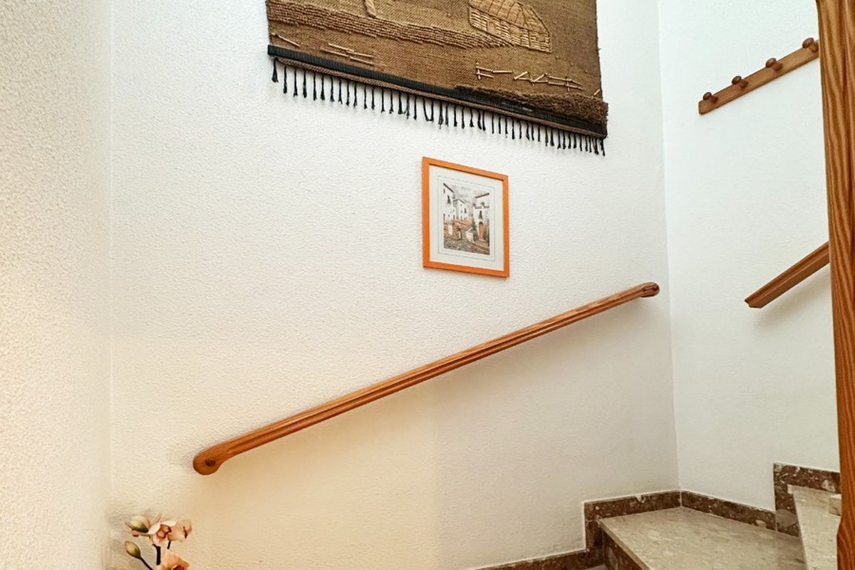 We are delighted to present a stunning three-bedroom property in La Zenia (beachside). This property is conveniently located just 700 metres from the beachfront, offering an unparalleled beach access.This attractive, terraced house combines a generous amount of space, a high level of comfort and a location in close proximity to the coast. It represents an ideal choice for those seeking a serene yet practical lifestyle on the Orihuela Costa.Interior: This property is 100 m² in size and is comprised of three bedrooms and two bathrooms. It offers ample living space for families or those seeking extra room for guests. The property has one bathroom, equipped with a bathtub, and the ground floor features a practical WC, offering added convenience.Living Room: The property boasts a generously proportioned living room, which serves as a comfortable area in which to relax and entertain, with natural light flooding in from the front terrace.Kitchen: The semi-independent kitchen, which is fully equipped, has an integrated dining area and offers access to the rear garden/patio, which is ideal for additional outdoor storage or as a quiet retreat. Outdoor Space: The property boasts a front terrace, ideal for al fresco dining or relaxation. The property also features a spacious back garden and private parking within the gated community, as well as access to a large communal swimming pool.The property includes an enclosed solarium, making it an ideal location for relaxation and entertainment, as well as a practical fourth bedroom.Orientation: south-east-facing, ensuring a sunny, comfortable environment throughout the day.Furnished: The property is sold furnished, ready for immediate occupation.Location: The property is conveniently located within a short walking distance of a variety of local amenities, including supermarkets, banks, pharmacies, and an array of bars, restaurants, and bus lines.This duplex offers an ideal combination of convenience and relaxation in a prime location near the sea, making it an excellent investment for anyone seeking a coastal lifestyle.This is an excellent opportunity to purchase a high-quality property in one of the most sought-after areas on the Costa Blanca. We encourage you to schedule a viewing as soon as possible to avoid disappointment.