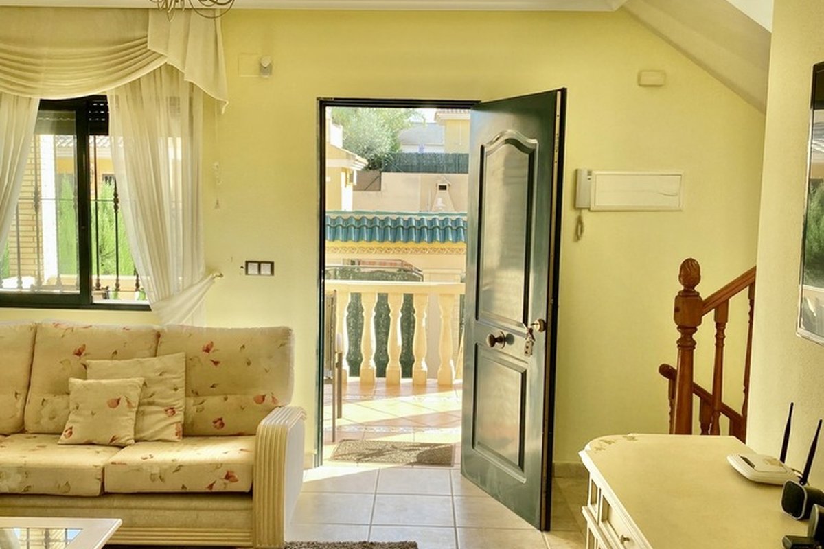 Semi-detached villa with private pool in Orihuela Costa | Spacious home, south-facing, fully furnished, ready to move in.Property OverviewThis three-level semi-detached villa is located in a quiet and established residential area Villamartín – Orihuela Costa, one of the most sought-after areas on the Southern Costa Blanca. The property is fully furnished and equipped, featuring a private swimming pool, garden, private garage, and a sunny rooftop solarium. Its strategic location makes it ideal both for year-round living and as a holiday or investment property. Layout and Main FeaturesTotal built area: 195.37 m²Usable (living) area: 160.44 m²Layout across 3 floors connected by an internal staircase:Basement: garage and recreation roomGround floor: living room, kitchen, access to the gardenFirst floor: bedrooms and bathrooms 3 double bedrooms with built-in wardrobes2 full bathroomsSpacious and bright living-dining areaIndependent kitchen fully equipped with appliancesLaundry room and storageSolarium, terrace, and balconyPrivate swimming pool of 21 m²Private gardenAir conditioningPrivate garage and communal parkingEnergy certificate: Class D Strategic Location in Orihuela Costa (Southern Costa Blanca)This property is located in one of the most desirable areas of the Southern Costa Blanca, ideal for year-round living, holidays, or rental investment. Everything you need is just a few minutes away, including top beaches, golf courses, shopping centers, and international transport connections. Key DistancesOrihuela Costa beaches (Playa Flamenca, La Zenia, Cabo Roig): 7–10 minutes by carAlicante International Airport (ALC): approx. 45 minutes (60 km)Murcia International Airport (RMU - Corvera): approx. 40 minutes (55 km)Zenia Boulevard Shopping Centre: 6 minutes by carNearby golf courses:Villamartín Golf: 5 minutesLas Ramblas Golf: 8 minutesReal Club de Golf Campoamor: 10 minutes Medical centers, pharmacies, and supermarkets within 5 minutesQuick access to the AP-7 motorway Why Invest in This PropertyBright and spacious south-facing homeQuiet and well-connected residential areaPerfect for permanent living or as a second homeHigh holiday rental potentialFully furnished and move-in readyLocated in a growing area with rising property valueInterested in This Property?Contact us for more information or to schedule a visit:Your new home on the Costa Blanca is waiting for you.