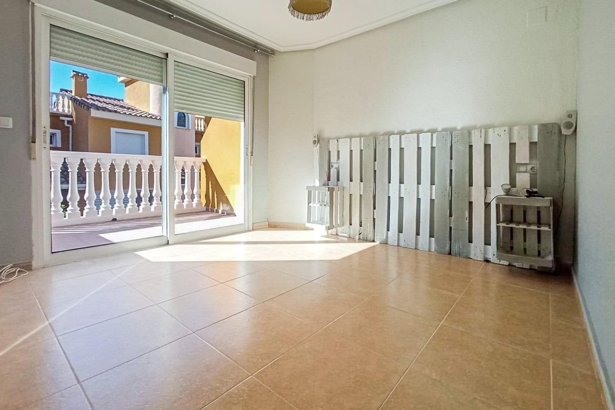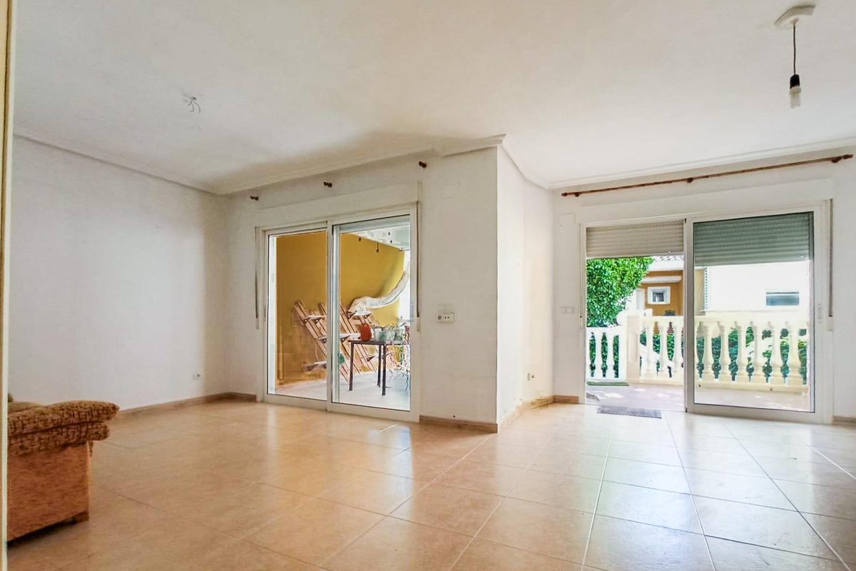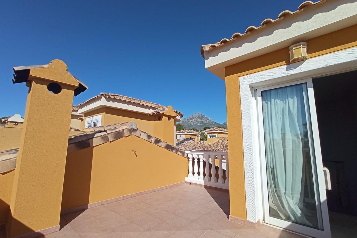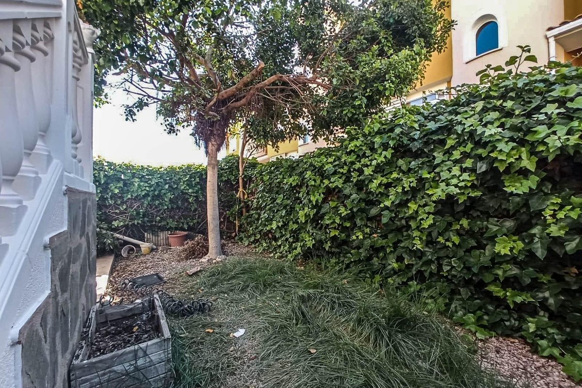 Townhouse with three bedrooms, two bathrooms, a separate kitchen, a spacious living-dining room, a sun terrace, and a garage for three cars with a storage room in a quiet, well-kept residential area with a pool and gardens, 1 km from the center of Alfaz del Pi.~The home has a 30 m2 living-dining room with a fireplace and opens onto the large outdoor terrace and a small garden. The kitchen is spacious, separate, and fully furnished and equipped, and also has a 6 m2 utility room/laundry room. There is also a guest toilet on this floor.~On the first floor are the three bedrooms. The master bedroom has a dressing room, a full ensuite bathroom, and a terrace, providing plenty of natural light. The other two bedrooms have natural light and built-in wardrobes, and on this floor is another full bathroom.~Upstairs, there is a beautiful sun terrace with views of the Puig Campana and Sierra Bernia mountains, ideal for sunbathing or relaxing in the afternoon or evening.~In the basement, we have a garage with capacity for three vehicles, a storage room, and all with direct underground access.~The complex is fully fenced and has a large communal pool and garden areas, as well as a parking lot with complimentary visitor spaces.~It is ideally located just 1 km from the center of Alfaz del Pi, and is close to supermarkets, a pharmacy, bars, and shops.