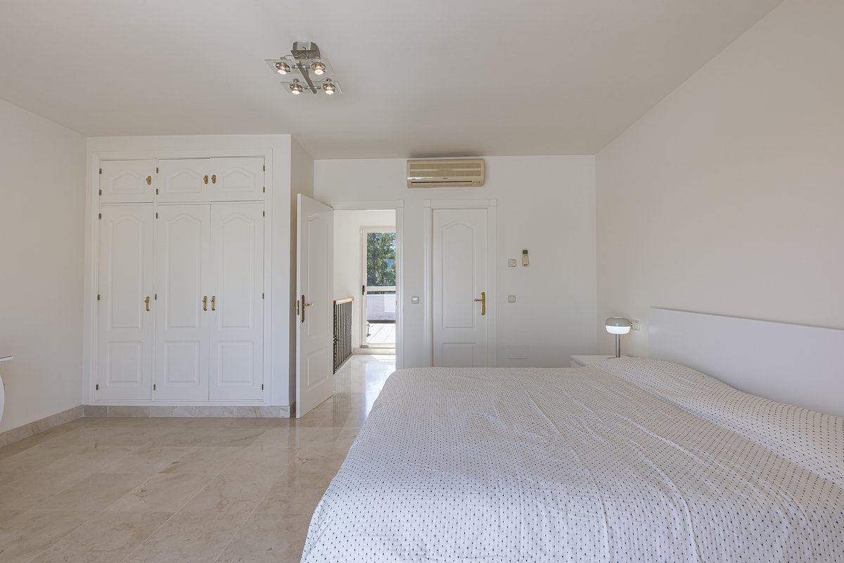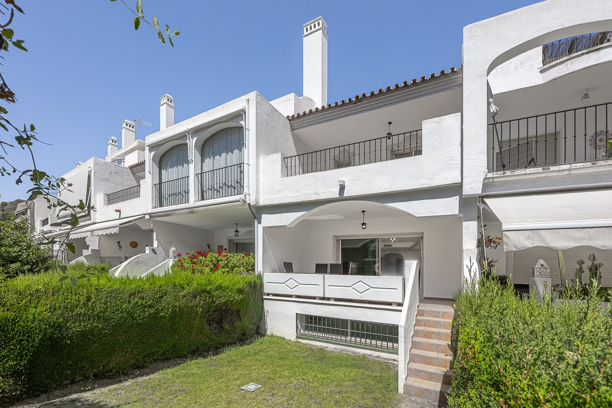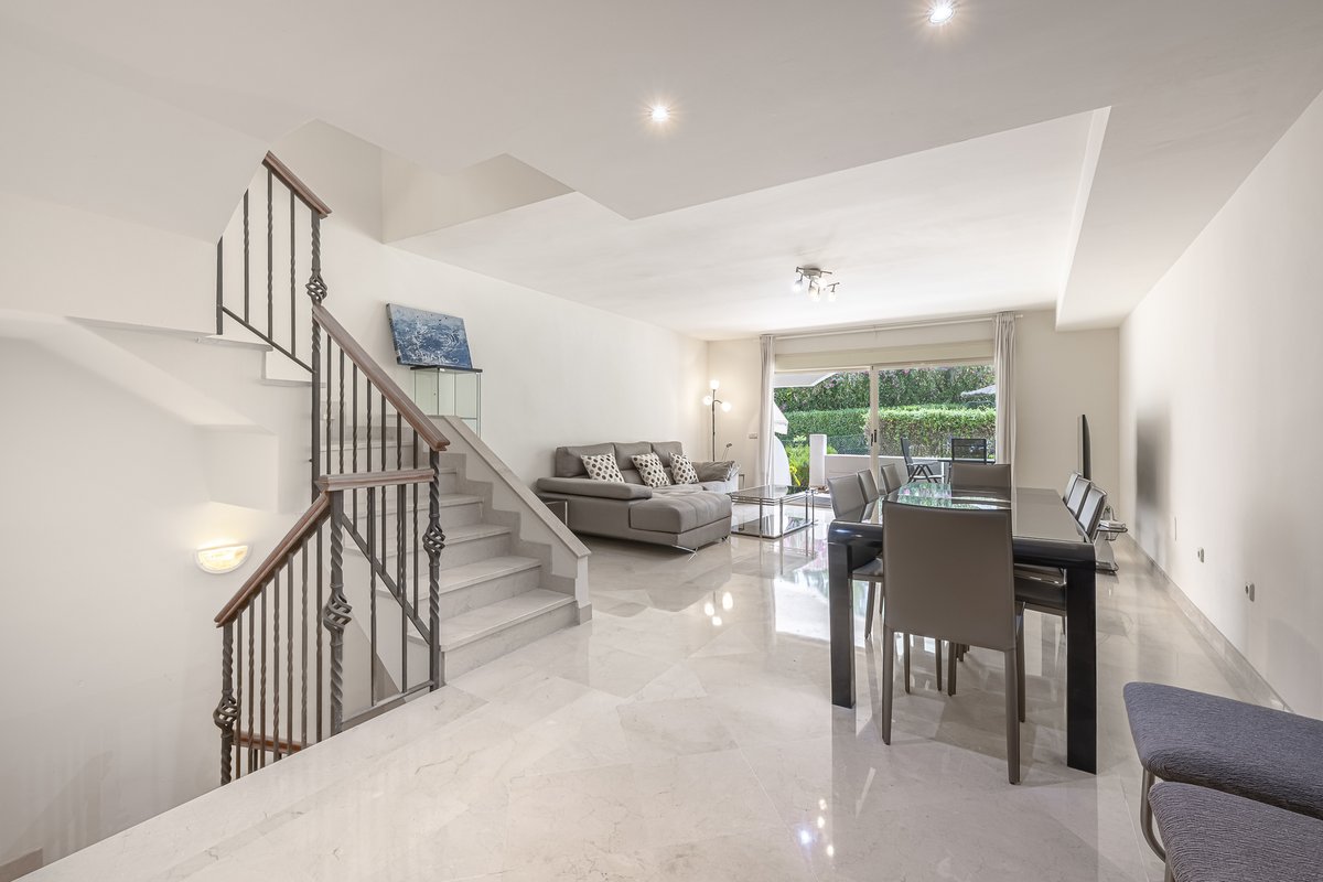 Elegant Family Townhouse in the Heart of Nueva Andalucía, Marbella´s Golf ValleyWelcome to this beautifully maintained and spacious townhouse, ideally situated in the prestigious Golf Valley of Nueva Andalucía. This four-level home combines comfort, style, and convenience—perfect for family living or as a luxurious holiday retreat. The main floor welcomes you with sunny patio, leading into a large, fully equipped independent kitchen. The generous open-plan living and dining area flows seamlessly onto a west-facing terrace and private garden, with direct access to the community swimming pool—ideal for relaxing or entertaining. A guest toilet adds practicality to this level. On the first floor, you’ll find two generously sized bedrooms, each with its own ensuite bathroom and private terrace, offering peaceful retreats with ample natural light. The top floor hosts a spacious bedroom featuring an ensuite bathroom, a large terrace with panoramic views of the golf course, and a sunny west-facing solarium for tranquil evenings. The expansive basement with natural light is a versatile space, perfect for -another bedroom, home cinema, playroom, office, or music studio. It also includes a guest bathroom, a laundry area, and direct access to an underground private garage with space for two vehicles. The house is constructed with the best quality materials and finishings. Located in an exclusive and private complex with very few neighbors. Enjoy tranquility in the beautifully landscaped gardens, swimming pool and gym area, Just a short drive to Puerto Banús and Marbella, it’s an unbeatable location for golf lovers and those seeking the best of Costa del Sol living. Move-in ready—don’t miss this exceptional opportunity!