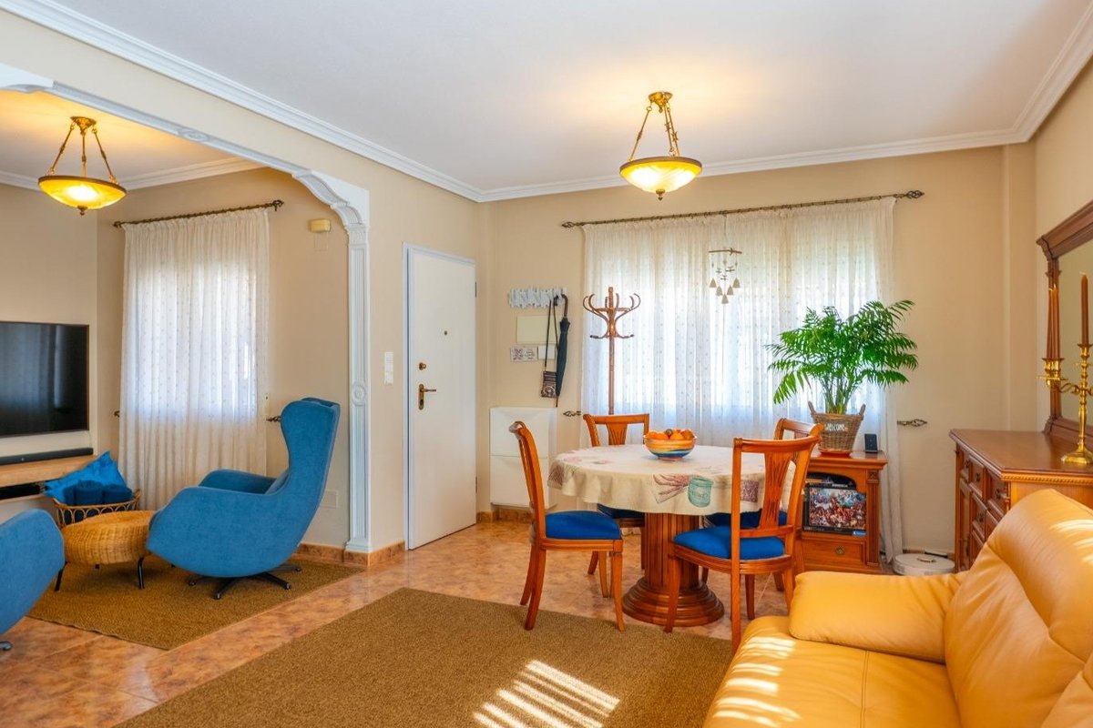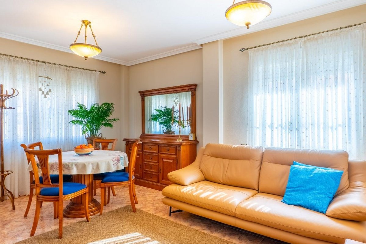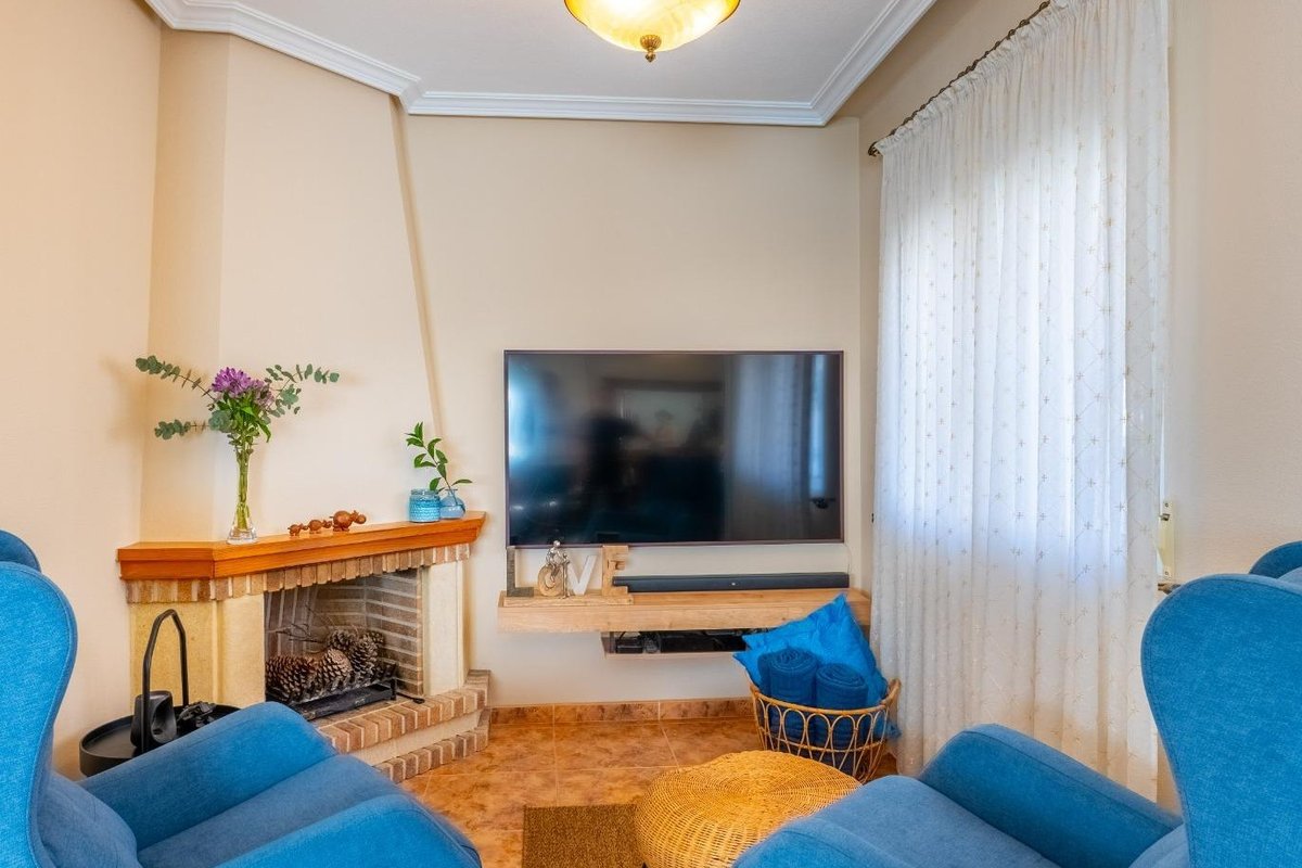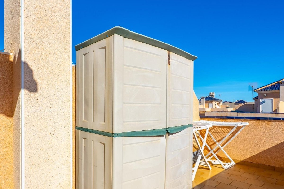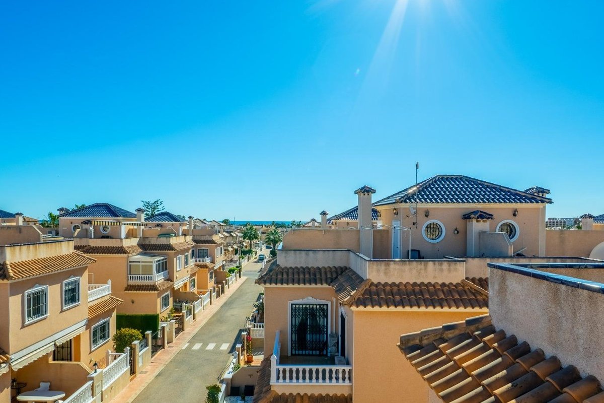 We invite you to visit this charming duplex house in Residencial Vista Azul, Orihuela Costa, one of the most sought-after areas of the Costa Blanca. Located in a highly valued residential environment, it allows you to enjoy the Mediterranean climate with tranquility and an active, healthy lifestyle.~~The property offers a comfortable layout across two floors plus a solarium. It features a spacious and bright furnished living room with a fireplace, a modern open-concept fully equipped kitchen, 2 bedrooms, and 2 full bathrooms. It also has a sunny terrace with a relaxation area and a well-kept garden with a leisure space and parking within the plot. A private storage room is included. One highlight of this villa is its solar panels.~~Residencial Vista Azul offers a communal pool and landscaped areas. It is approximately 1 km from the sea and 1,700 m from La Zenia Boulevard Shopping Center, with all essential services nearby: supermarkets, restaurants, shops, and pharmacies.~An ideal location for its tranquility, beautiful beaches, and excellent climate—perfect as a permanent residence or an investment.~~Important information: according to this price, some furniture items are not included, specifically 3 armchairs, 2 sofas, and 1 bed.~~The property price does not include notary, registration fees, or applicable taxes, which vary according to the property price and current regulations in the Valencian Community.