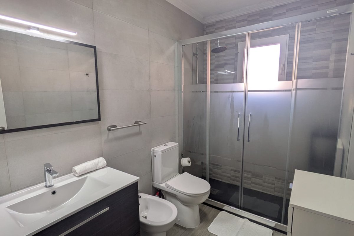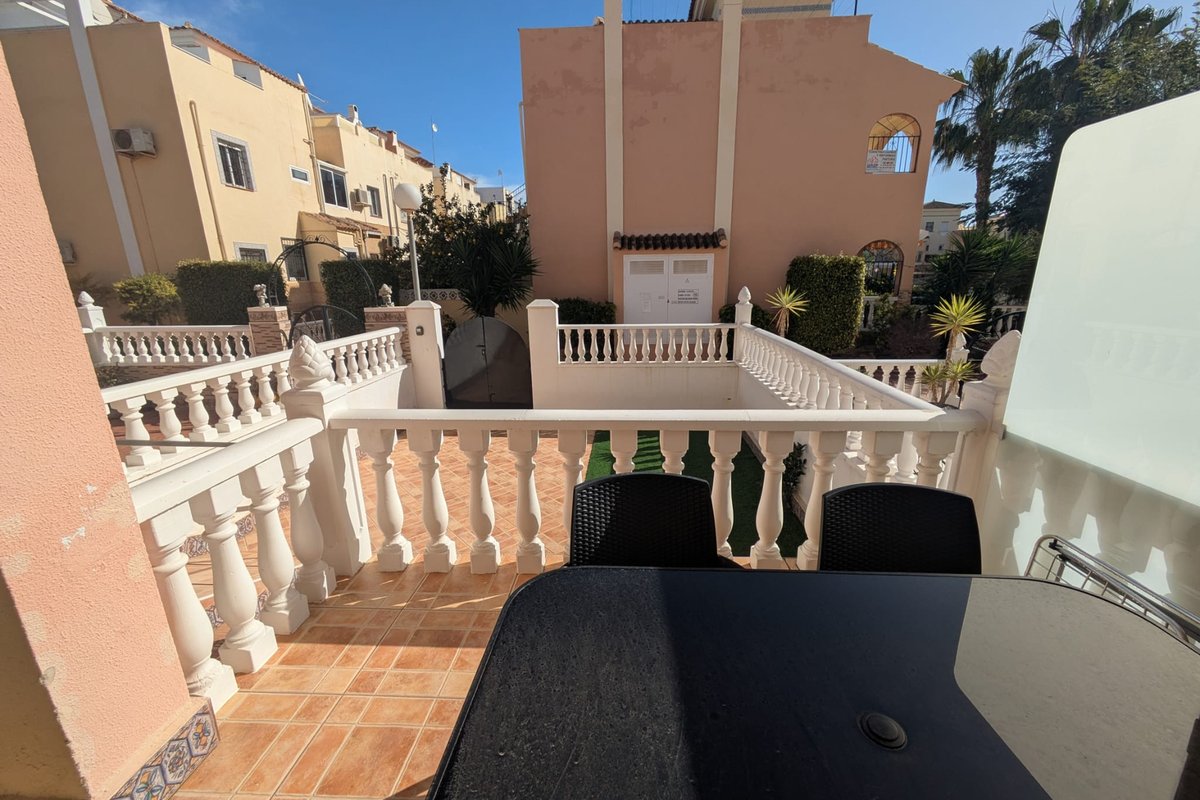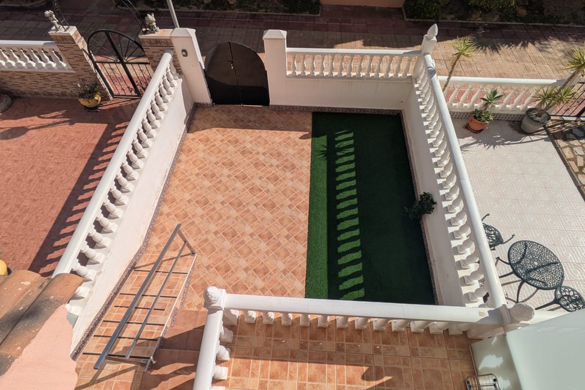 Set on a secure, gated residence, the spacious 98m2 house consists of 3 bedrooms, 1 full bathrooms, 1 guest toilet, a large living/dining room and a separate kitchen with a separate utility area. There is plenty of outside space to enjoy the beautiful Spanish climate - leading from the living room is a raised terrace which leads down to a low maintenance garden area, leading from the master bedroom is a nice sized terrace which has views towards the pool, and on the top floor is a solarium with pool views - perfect for enjoying all day sunshine. From the kitchen you have access to a large under build garage perfect for storage and parking your car securely.