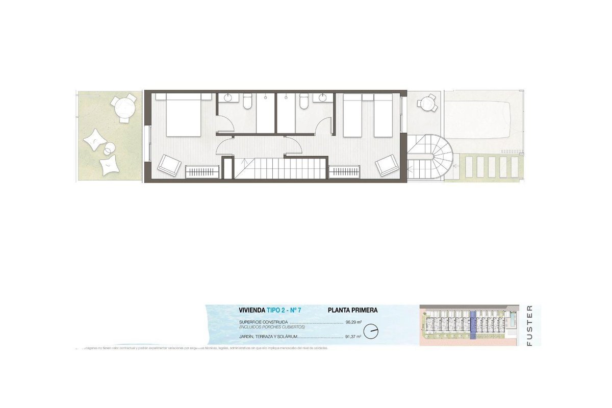 Exclusive development of spacious townhouses located in one of the most convenient and pleasant areas of Pilar de la Horadada, surrounded by nature, amenities, and a peaceful residential environment. The homes are bordered by two parks and a pedestrian street, providing privacy, green spaces, and an ideal setting for strolling and relaxing.~~Just an 8-minute drive from Las Higuericas Beach, this development stands out for its contemporary and functional design. The homes are available in 2- and 3-bedroom layouts, with 2 full bathrooms, 1 guest toilet, a living-dining room, and a modern kitchen that maximizes spaciousness and natural light.~~Each home features 4 terraces with two different orientations, allowing you to enjoy the sun throughout the day and create unique outdoor spaces. They also include a porch, a large private solarium, and on-site parking, providing comfort and privacy for everyday living.~~The residential complex features two communal swimming pools:~~*An indoor pool, perfect for year-round enjoyment.~~*An outdoor pool with a beach area, ideal for relaxing under the Mediterranean sun.~~The location is simply unbeatable:~~Just 100 meters from Mercadona supermarket~~100 meters from the Municipal Sports Center~~A short walk from La Rambla, a popular promenade and leisure area~~And close to all kinds of shops, cafes, a medical center, pharmacies, a gym, a veterinary clinic, and essential services.~~Furthermore, Alicante-Elche Airport is only a 50-minute drive away, facilitating travel and international connections.~~It offers the perfect combination of design, surroundings, services, and quality of life.~~Your new home in Pilar de la Horadada awaits.