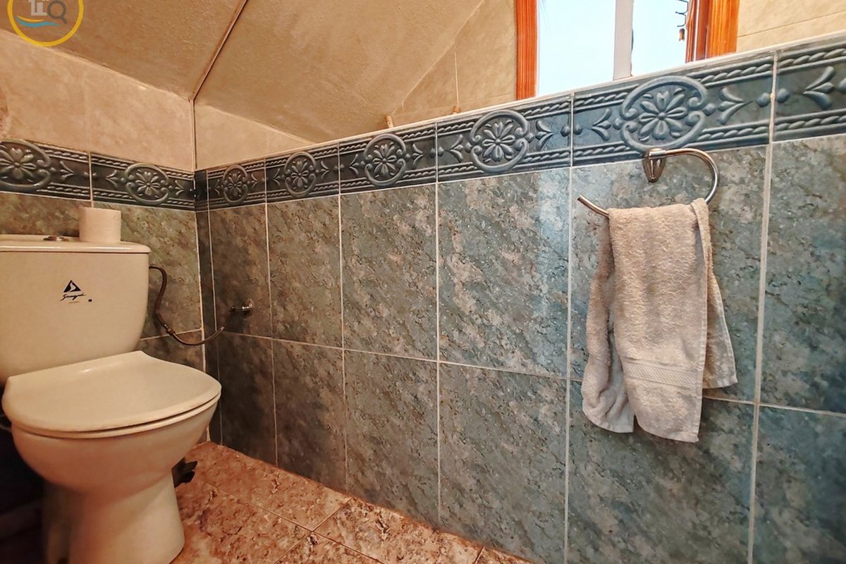 On the ground there is a good-size lounge with dining area, 1 WC, ( with possibility of placing shower) an open plan kitchen with breakfast bar area which leads out onto a rear patio with galvanised storage area, and also further storage housing the boiler / washing machine, internal staircase leads up to the first floor where there is a 1 family bathroom, and 2 double bedrooms with fitted wardrobes. Master bedroom has its own private terrace.