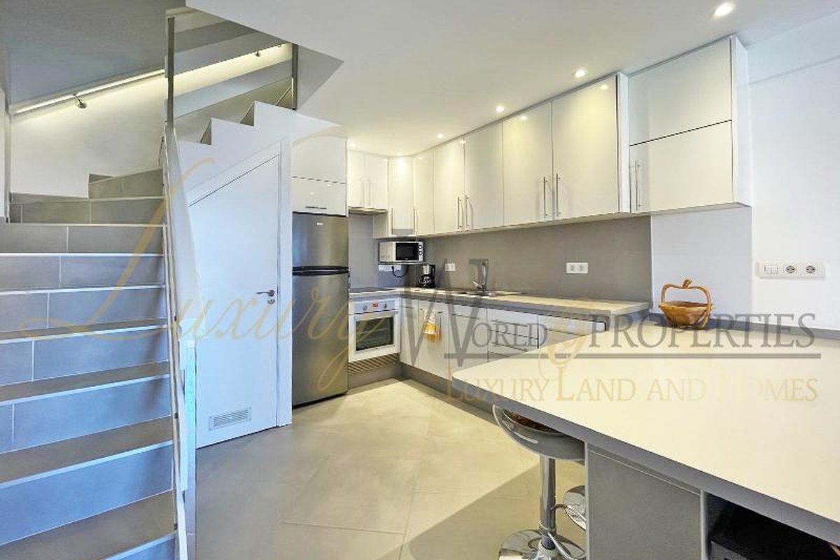 Luxury World Properties is pleased to offer this well-located duplex in Playa de las Américas, in the Compostela Beach complex. The apartment has a living area of 60 m2 and features 2 terraces with a total area of 21 m2 and views of the sea and the pool. It offers a bright living-dining room, an American kitchen, 2 bedrooms, and 1 bathroom. Additionally, it is equipped with air conditioning, and the complex has a pool. This duplex is close to amenities such as a hospital, Mercadona supermarket, golf course, and just minutes from the beach.