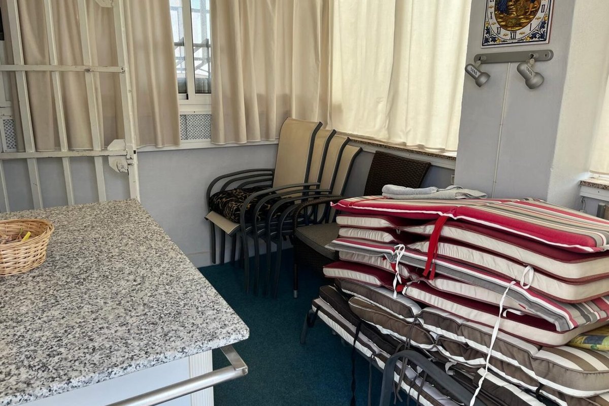The upper floor comprises a third bedroom, a bright conservatory, and a spacious terrace. From here, stairs lead up to a rooftop tower with stunning sea views. The home is part of a friendly residential community that offers two communal swimming pools. Price: 209.000€