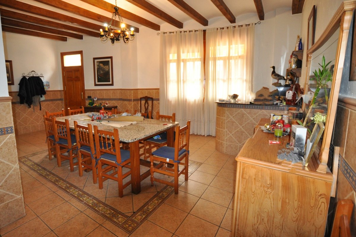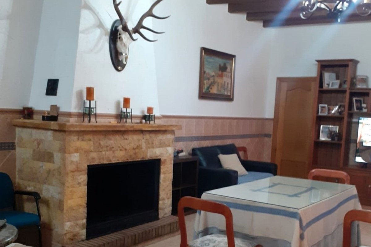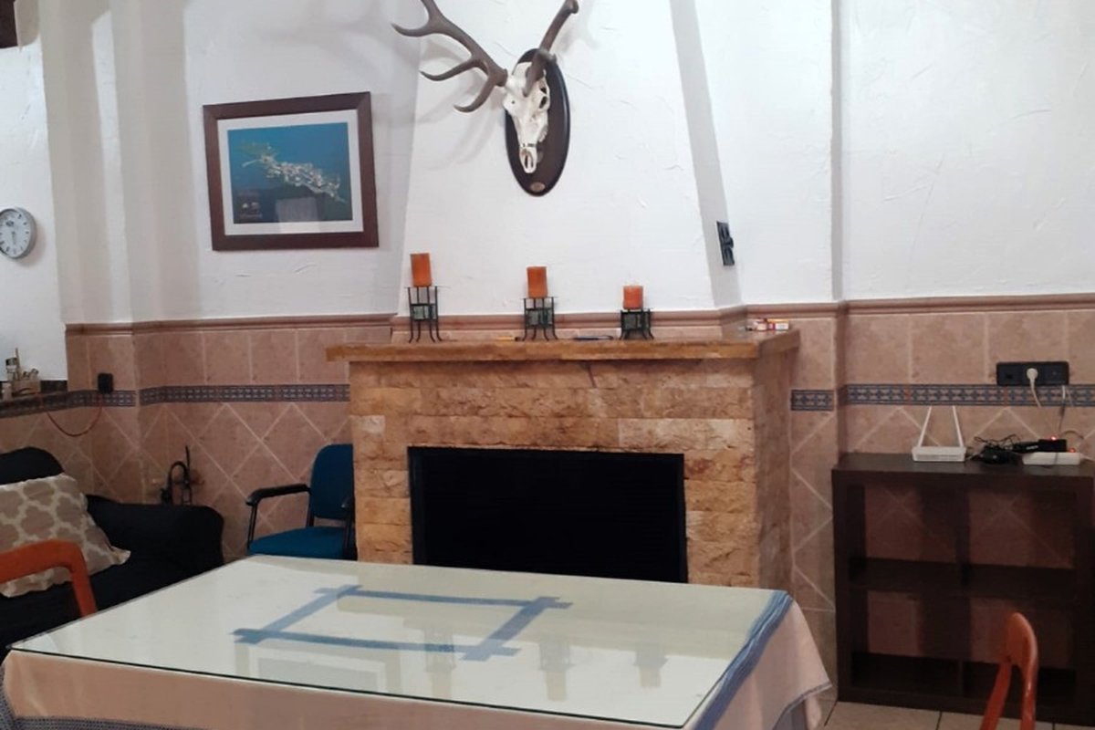 Inside, you’re welcomed by a bright and inviting entrance area with a staircase leading to the upper floor. To the right, there is a generous garage, and straight ahead you’ll find the living room — a comfortable and relaxing space featuring exposed wooden beams and a decorative fireplace, making it perfect for cozy evenings or gatherings with family and friends.