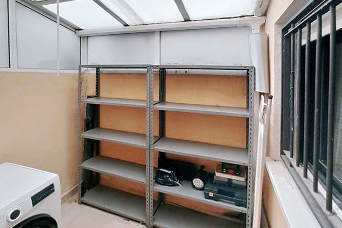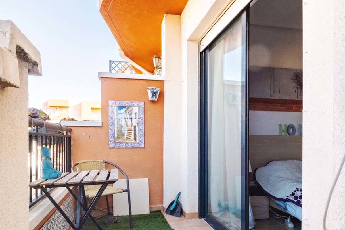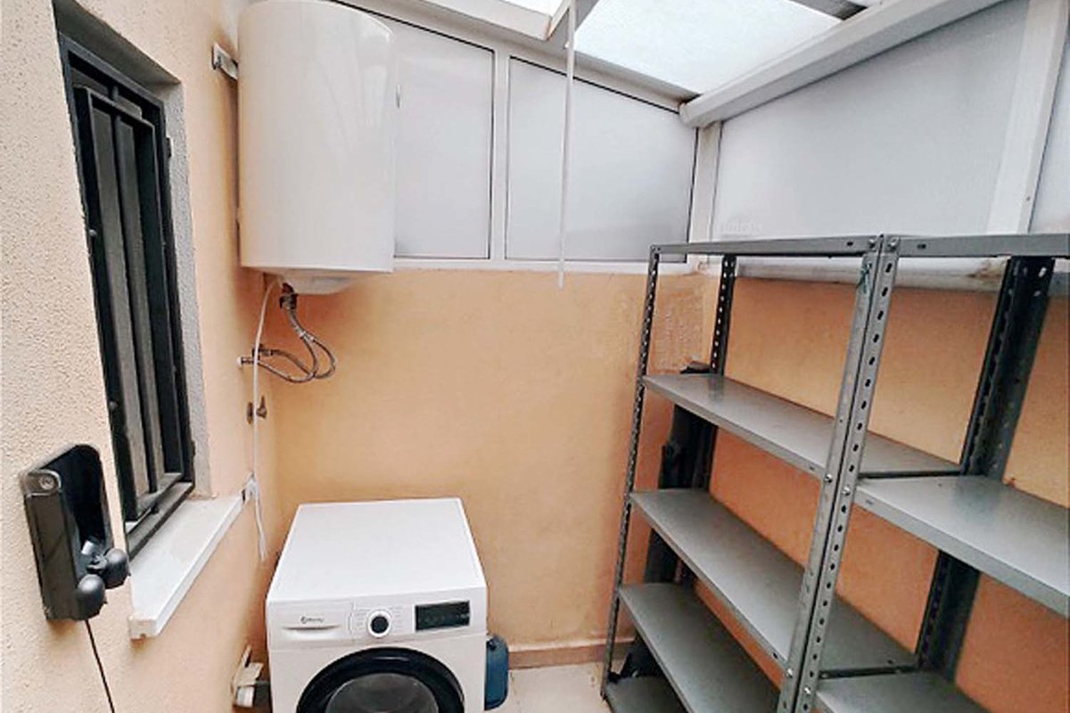 To the front of the property is a good sized fully tiled garden with space for dining and seating area, there are a few steps leading up to a further terrace area and the front door to the townhouse which is via a sunroom where the front door is located. The front door opens into a spacious and light living area fitted with hot/cold air conditioning, to the rear of the living area is a well presented semi open plan kitchen with door leading out to a utility/storage room. Also located on the ground floor is a double bedroom and bathroom with shower.