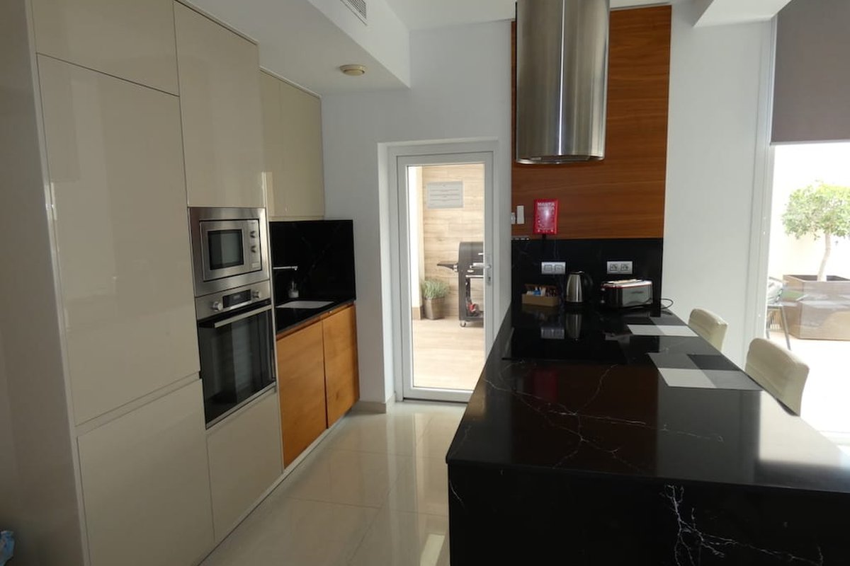 The property is offered unfurnished, allowing you to personalise the interior, but some fixtures such as kitchen appliances and jacuzzi are included.