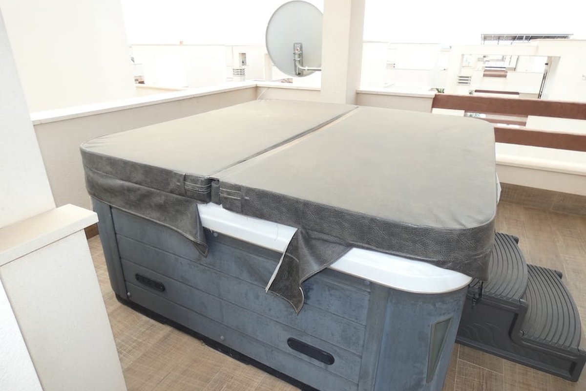 A further set of stairs leads to a generous solarium, which includes front and rear terraces and a dedicated laundry area, along with a luxurious six-person jacuzzi—the perfect spot for unwinding in style.