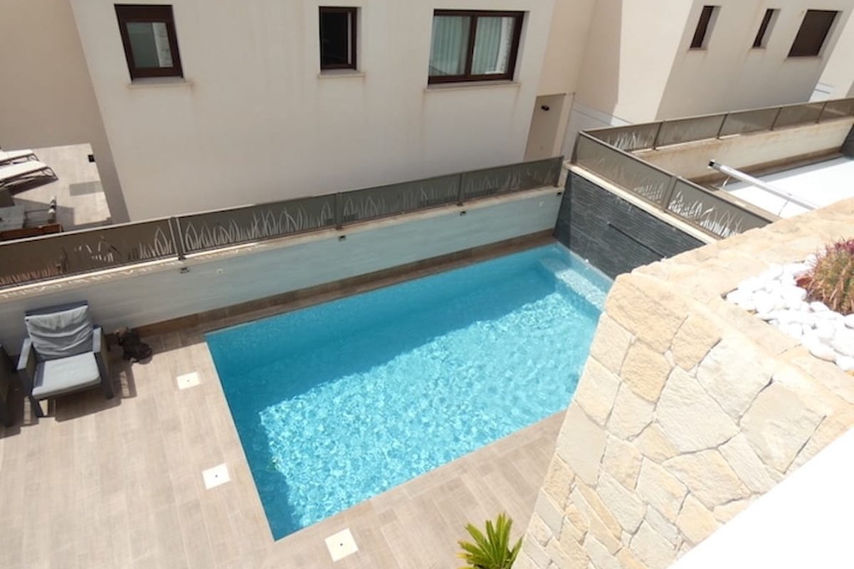 This exceptional three-bedroom, three-bathroom modern villa, built on a 200 square metre plot with a 101 square metre interior, private pool, jacuzzi, and off-road parking, is available for €399,900.