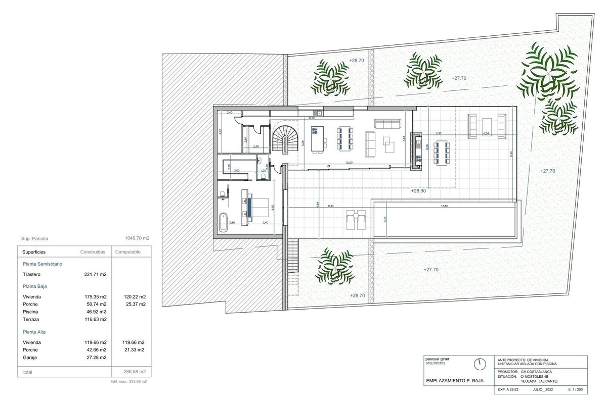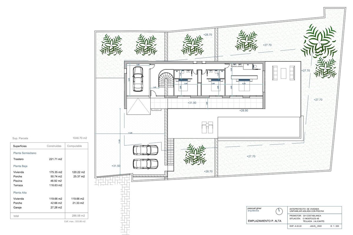 Villa in MorairaDiscover the charm of this beautiful luxury villa, set on a plot of 1046 m² with two pedestrian and vehicle accesses, including one through the communal area of the urbanization. Strategically located within walking distance of the beautiful beaches and the centre of Moraira, this property offers an exceptional living experience.Layout of the Villa:This villa, spread over 3 floors, stands out for its modern design and clever layout:GROUND FLOOR: Spacious bright living room next to an open kitchen with island, a guest toilet and a bedroom with en-suite bathroom. Outside, a stunning infinity pool, surrounded by a spacious terrace and barbecue area, creates a perfect atmosphere for entertaining.UPPER FLOOR: 3 spacious bedrooms, each with its own en-suite bathroom and a private balcony to enjoy the stunning views. On the outside of this floor is the garage, providing comfort and space for your vehicle.BASEMENT FLOOR: It houses a generous storage room of 221 m², adding functionality and storage space.Featured Extras:The villa is equipped with the finest qualities and luxury amenities, including:Technal carpentry with safety glass.Full kitchen with Siemens appliances.Bathrooms and taps complete from the prestigious Roca brand.LED lighting.Aerothermal system for hot water and underfloor heating.Ducted air conditioning (hot and cold) throughout the house.Pre-installation of solar panels.Solar panel for sanitary water.Fitted wardrobes.Electric blinds.Indoor alarm, pre-installation of outdoor alarm and security cameras.Exteriors and energy classification:Rectangular swimming pool with overflow system.Barbecue area.Laundry.Perfectly finished garden.Automatic access doors.Energy classification A.South facing.This project is part of a small development made up of six modern homes, each with its own car park.Located on plot 4, this project offers a unique opportunity for those looking for a luxury residence in an exclusive and tranquil setting.~