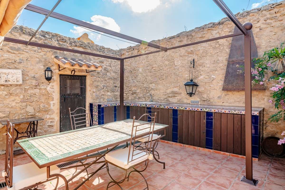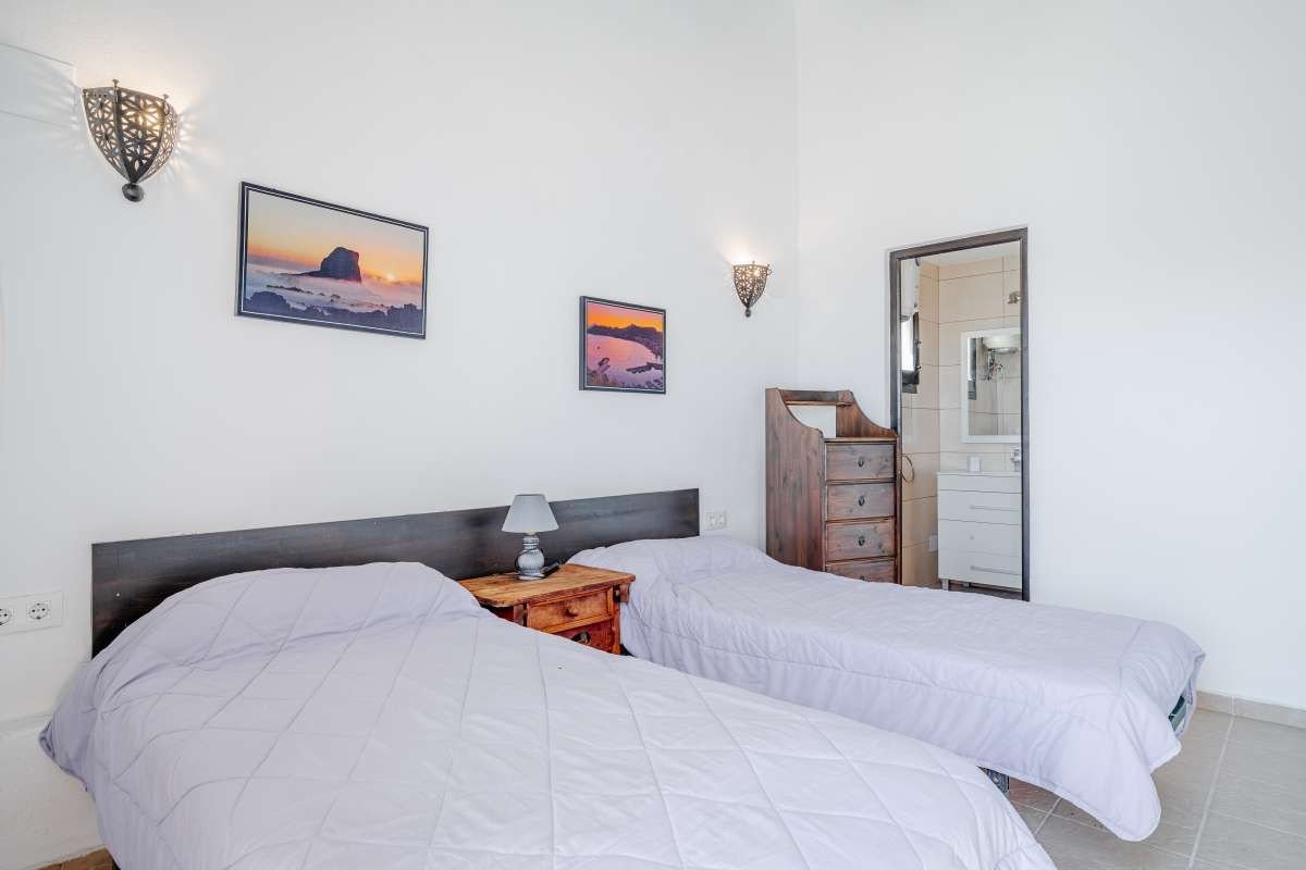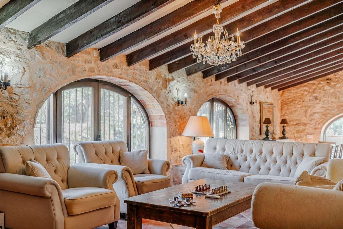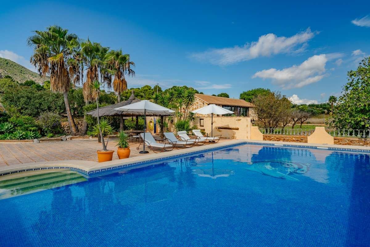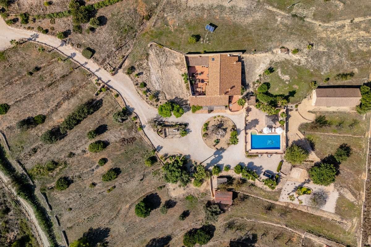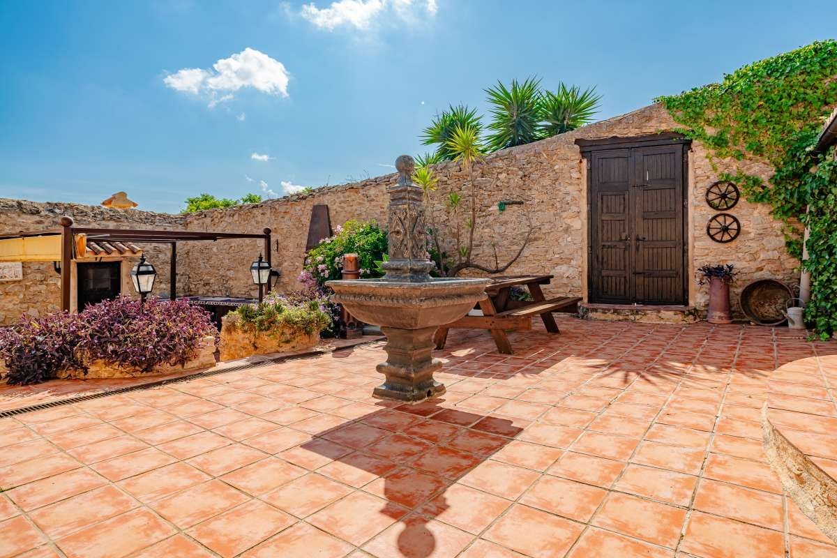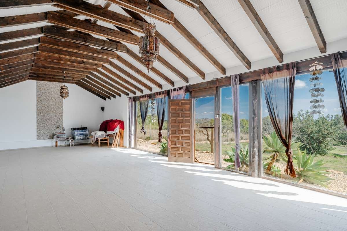 The Finca Vinyent is uniquely situated along the Mediterranean with its privileged location on flat land offering magnificent views of the Penon de Ifach de Calpe, the sea and the Sierra de Olta, making it an ideal place to seek peace and tranquility. With no immediate neighbors, this extraordinary property within the green valley of Benissa is near Hipica town, and is not far from restaurants and shops.~Full of elegance and exclusivity spread over 650sq.m, the Finca is surrounded by a magical natural landscape and 300 years of rich history. Each of its 8 rooms plus 2 apartments have their own individual character thus forming a special and incomparably harmonious unit. Embedded in this typical landscape is the distinctive architectural style of the property which is light brown like the surrounding terrain, as well as the rocks on the walls. The architecture of the walls and the ceilings is also harmonious with the furniture and radiates a warm and comfortable atmosphere.~Outside, there is the pool and an adjacent Mediterranean garden of citrus and tropical fruit trees. Both are isolated thereby affording you the privacy you need to unwind and relax. After a refreshing swim, the sun loungers on the pool terrace are ideal for sunbathing or taking a nap outdoors. The straw pavilion has style and invites you to enjoy a refreshing sangria. Of course the field offers the possibility of a cozy barbeque in the spacious barbeque area. You can also choose to enjoy a front row seat to watching the picturesque sunset.~Depending on the season and the time of day, you can choose between several outdoor rest areas to sit, relax and enjoy a glass of your favorite beverage. In this intact nature, you can also go hiking or take a walk. The nearest town of Benissa is easily accessible by car. The picturesque beaches of Calpe with its fine sand and crystal clear water can be reached in just 15 minutes. ~The additional possibility of converting the Finca Vinyent into a small charming hotel makes the property a perfect investment. Contact us today to arrange for a site visit.~