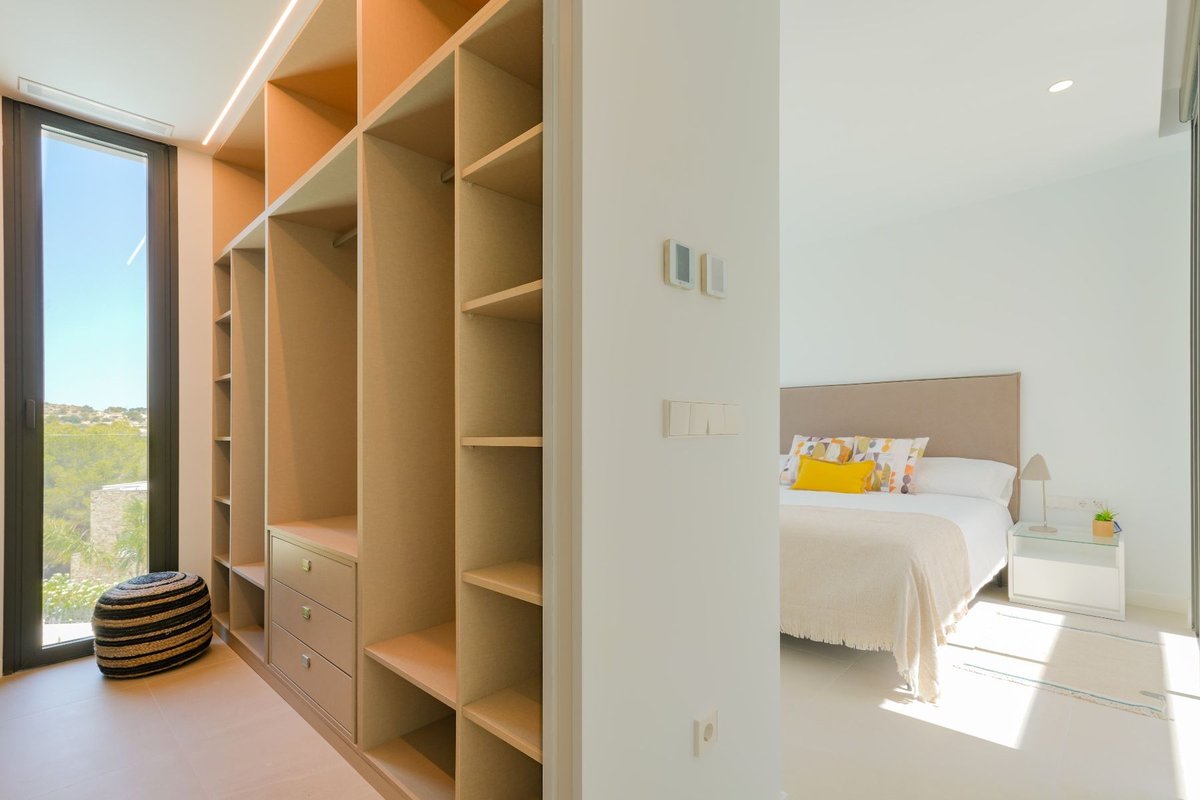 Welcome to this stunning villa, perfectly located with excellent connections to Teulada, Benissa and Moraira — all within just 10 minutes` reach. This exclusive property combines comfort, modern convenience and breathtaking views.~~Layout and amenities:~~- Two entrances: The first entrance welcomes you via a spacious terrace with a private swimming pool, ideal for relaxing summer days. The second entrance is accessible via an automatic gate that leads to a double garage with direct access to the house.~- Ground floor: Here you will find a fully equipped kitchen with high-quality Siemens appliances, large Reynaers sliding windows that provide a seamless indoor-outdoor connection and panoramic views of the surrounding mountains and nature. The bright and spacious living room, complete with parquet flooring, offers optimal comfort and style. Also on this floor are a guest toilet and a bedroom with en-suite bathroom.~- Upper floor: Three bedrooms, including a luxurious master bedroom with dressing area and en-suite bathroom. The other two bedrooms share a bathroom. All rooms open onto a sunny solarium, the perfect place to relax and enjoy the view.~- Lower level (-1): A spacious garage with an additional guest toilet, large laundry room with washing machine and dryer, and ample storage space.~~Extras and comfort:~~This villa is equipped with an advanced home automation system, allowing you to control the air conditioning, heating and underfloor heating in each room. This means you can enjoy an optimal indoor climate all year round.~~Contact us today!~~Are you interested in this beautiful villa? Schedule a private viewing and experience the sublime location and luxurious amenities for yourself. We look forward to welcoming you for a tour!~