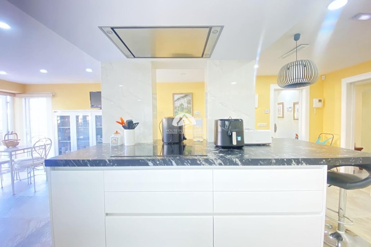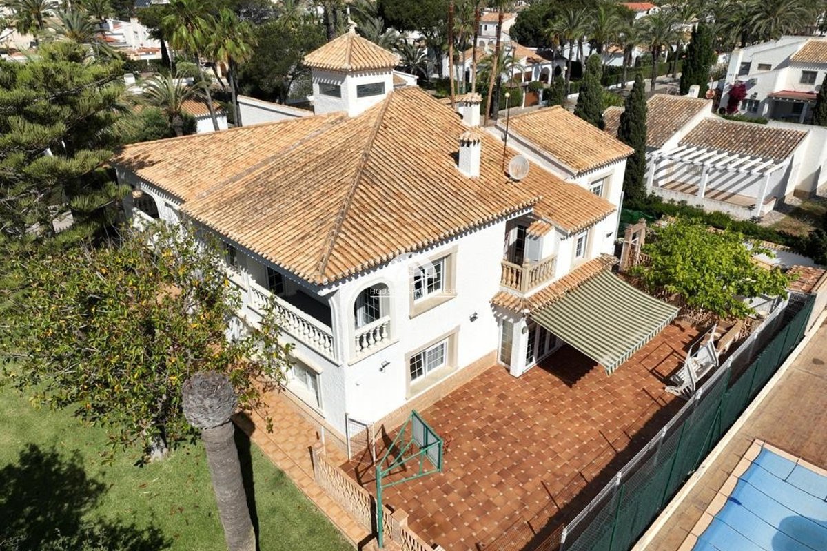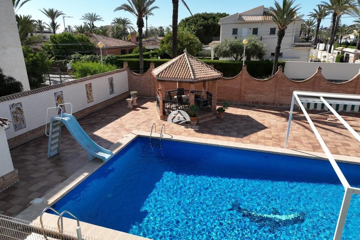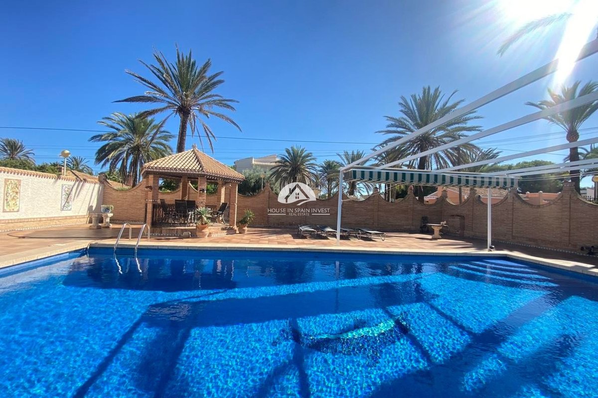 Luxury Villa in Cabo Roig: An Oasis a Few Metres from the Beach We present this spectacular luxury villa in Cabo Roig, located just 200 metres from the sea, on a plot of 1,466 square metres, with approximately 400 metres built, this property is a true paradise that combines elegance, comfort and privacy in an idyllic setting. Upon arrival, you will be greeted by a stunning garden surrounding the villa, with manicured lawns, majestic mature trees and a myriad of palm trees, creating an atmosphere of a Mediterranean oasis. The outdoor jewel is a private 12x5 metre swimming pool, ideal for relaxing in the sun or enjoying unforgettable moments with the family. Next to the pool there is a beautiful gazebo with pergola, ideal for outdoor gatherings or relaxing in a cool and shady environment. There is also a practical toilet/shower room for more comfort in this recreational area. As you enter the house, you are welcomed by a large porch full of natural light. From here, you enter a spacious hall that leads you to the elegant living room. This space has been designed to provide comfort and luminosity, thanks to its large windows that connect with the exterior, making it the perfect place for meetings, dinners or simply relaxing. The fully renovated kitchen is another of the main attractions of this villa. With a modern and functional design, it features a large central island, plenty of storage space and a dining area. In addition, from the kitchen there is access to a large back patio, ideal for al fresco dining, as well as a pantry and the private garage. The ground floor also offers two additional rooms, currently used as an office and living room, but perfectly adaptable as bedrooms. Completing this floor is a spacious bathroom with a large walk-in shower. An elegant wooden staircase leads to the upper floor, where there are six additional spacious bedrooms and three bathrooms. One of the bathrooms is en suite, and several of the bedrooms have access to a private terrace, where you can enjoy the stunning views and the sea breeze. This villa is perfect for those looking for an exclusive home by the sea, with all the comforts and space a family could need. A place where tranquillity and luxury meet, creating a unique living experience in Cabo Roig. Come and discover it and make this oasis your next home! Cabo Roig is a popular coastal area located in the municipality of Orihuela, in the province of Alicante. It is known for its golden sandy beaches, Mediterranean climate and quiet residential atmosphere, making it an attractive destination for both tourists and residents.