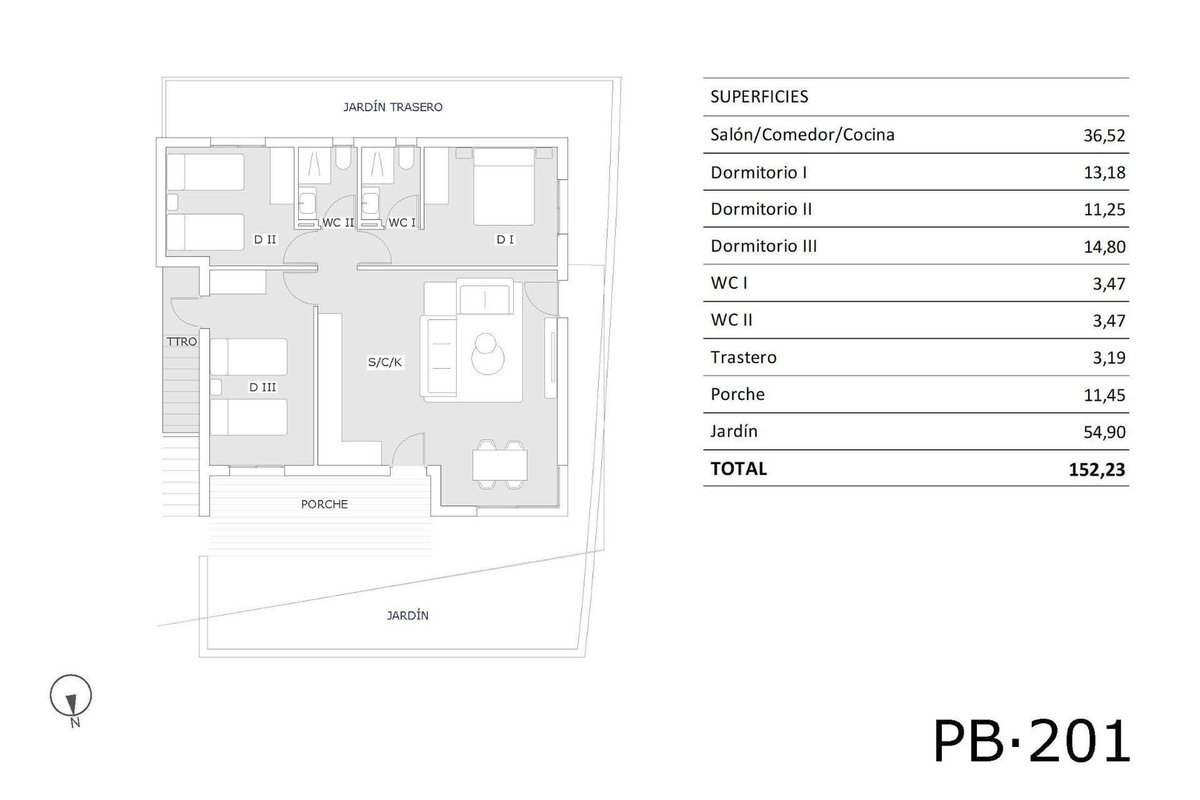 Newly built bungalows in San Miguel de Salinas with 2 communal swimming poolsMediterranean Lifestyle in a Natural SettingDiscover this modern residential development of new-build bungalows in San Miguel de Salinas, a town in the south of the province of Alicante, in the Vega Baja del Segura region. This charming municipality combines proximity to the sea with the tranquillity of nature, making it an ideal place for both permanent residence and holidays.Housing Options for All LifestylesThe residential complex offers bungalow-style apartments with 2 or 3 bedrooms distributed in two options:Ground floor with private garden and storage roomUpper floor with private solariumEach home has been designed with a modern and functional approach, providing comfort, natural light and outdoor spaces to enjoy the Mediterranean climate all year round.Communal Areas for Family EnjoymentThis residential complex is completely enclosed and has excellent communal areas:2 large communal swimming pools for adults and childrenOver 2,600 m² of landscaped green areasChildren`s play areaThese facilities make the residential complex an ideal place for families, couples and retirees looking for quality of life in a safe and relaxed environment.Modern Qualities and Energy EfficiencyThe homes feature high-quality materials and meticulous finishes:Fully fitted kitchenExterior carpentry with thermal break and double glazingReinforced entrance doorBathroom furniture includedPre-installation of split air conditioning in living room and bedroomsExcellent Location Close to Golf, Beaches and ServicesSan Miguel de Salinas is strategically located near tourist and natural areas:Golf courses such as Vistabella, Las Colinas and Campoamor less than 10 km awayOrihuela Costa beaches 11 km awayTorrevieja and La Mata lagoons just 8 km awayLa Zenia Boulevard shopping centre 9 km awayAlicante-Elche Airport 58 km away (35 minutes by car)Murcia International Airport 63 km away (1 hour by car)Your new home on the Costa BlancaThese properties represent an excellent opportunity for those seeking quality, comfort and location.Contact us now for more information or to schedule your visit and take the first step towards your life on the Costa Blanca.~