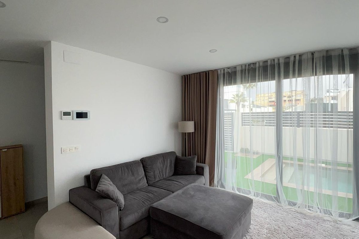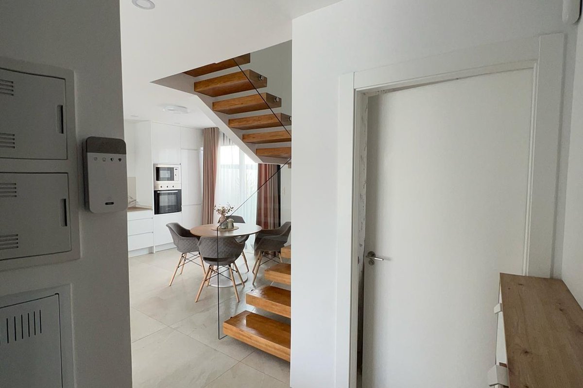 We present this wonderful two-storey semi-detached house located in Benijófar. It was built in 2024, fully equipped with furniture and all the necessary appliances. Spacious rooms, a cozy patio with pool and terrace, as well as a convenient location make it an excellent choice for those who value comfort and quality. About the house: • 110 m² total floor area • Plot of 150 m² – there is a parking space, barbecue area and a small garden. • 2 bedrooms with fitted wardrobes • 2 bathrooms, one of them with shower. • Kitchen-dining room combined with living room, with panoramic view of the pool. • Terrace with garden furniture and retractable awning. • Exit to the solarium on the second floor. Location: The house is located in a quiet area, but everything you need is nearby: shops, pharmacies, restaurants, banks, everything is within walking distance. The beaches of Guardamar del Segura and La Mata are only a 15-minute drive away. There is also