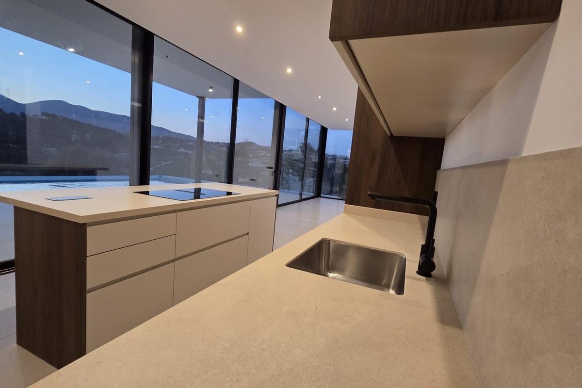 3 bedrooms, 4 bathrooms Plot: 1000 m2 View: Open panoramic view, Orientation: Southwest Start of construction: 15.09.20241. Fully insulated walls2. Porcelain tiles inside and out3. Electric entrance door for vehicles4. Lacquered aluminum doors and windows5. Climalit double glazing6. Glass balustrades7. Wardrobes with sliding doors8. Kitchen with Silestone or Quartz worktops9. Appliances included: oven, ceramic hob, cooker hood, fridge/freezer, microwave and dishwasher.10. Bathrooms include vanity units with mirrors, chrome taps and showers, and wall-hung toilets.11. Solar or aerothermal hot water.12. Halogen lighting inside and out13. 10 x 4 m swimming pool with LED lighting, steps, mosaic tiles and outdoor shower14. Hot/cold air conditioning15. Underfloor heating.