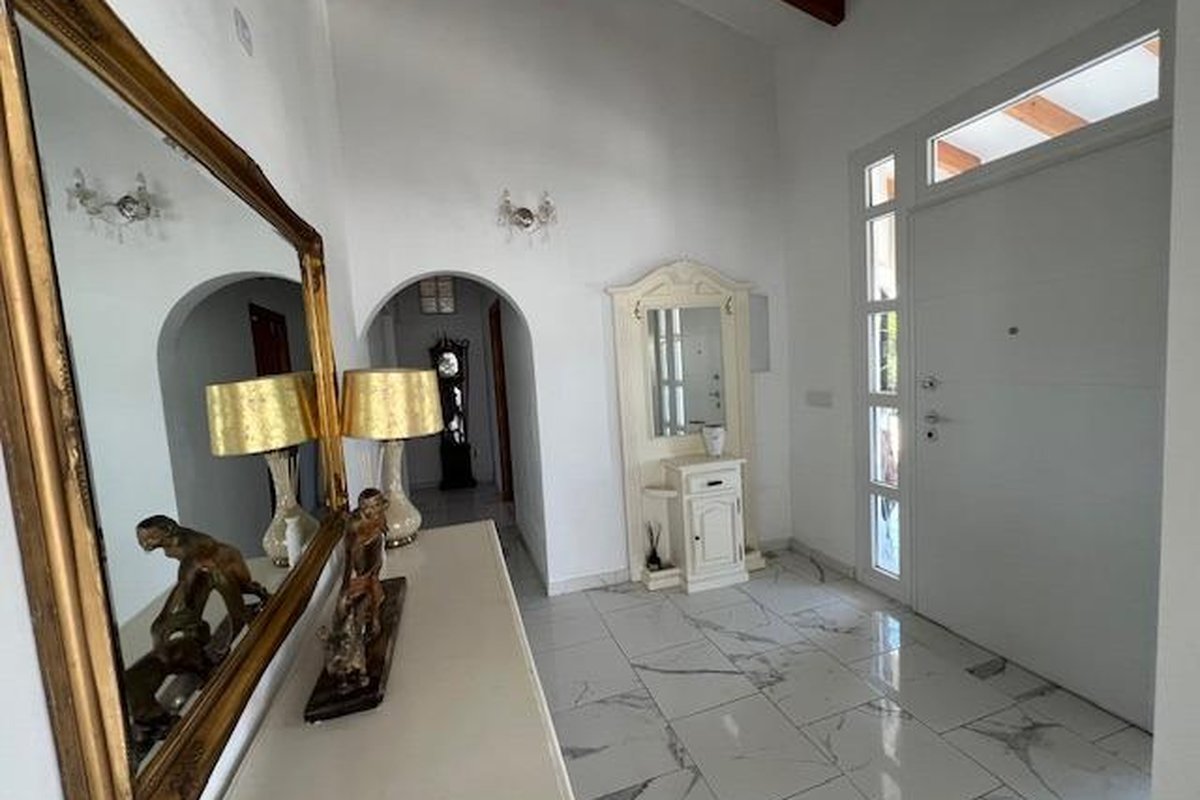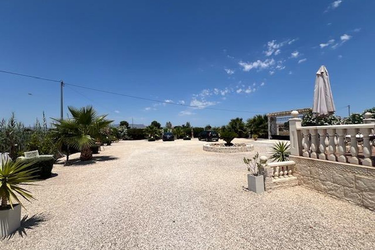 Discover the perfect blend of rural charm and modern living in this impressive detached property located in the countryside of Dolores. The property benefits from a secluded, gated location, including a luxurious private swimming pool and outdoor barbeque area. Five beautiful marble steps lead to the impressive entrance, with a high security front door. Once inside there is a welcoming hall with security lighting and a fitted mirror fronted wardrobe, providing excellent storage. There are 3 generously sized bedrooms: Two double and one mezzanine style single. All bedrooms have ample wardrobe and storage space. Additionally each boasts its own unique and beautifully styled and furnished en suite bathroom. There is an additional fourth family shower room for further comfort. The wonderfully spacious open plan living area has a spectacular lounge and dining area, with outstanding natural lighting and views to the stunning gardens and surrounding countryside. There is a wood burning stove for the winter months. The kitchen is fully equipped with a range of base and wall units and marble surfaces. The island integrates an electric oven and there is a gas and electric hob. A large American style fridge freezer and washing machine complement the space. The exterior of the property is just as impressive with its large and charming mature gardens of palm and olive trees in addition to tastefully placed floral bushes to enhance the privacy. There is a large terraced area leading from the lounge dining area and 2 further balconies. Once outdoors the spacious outdoor dining patio complements the barbecue area, with a further tiled courtyard. The property has air conditioning heating units in the living area and bedrooms.