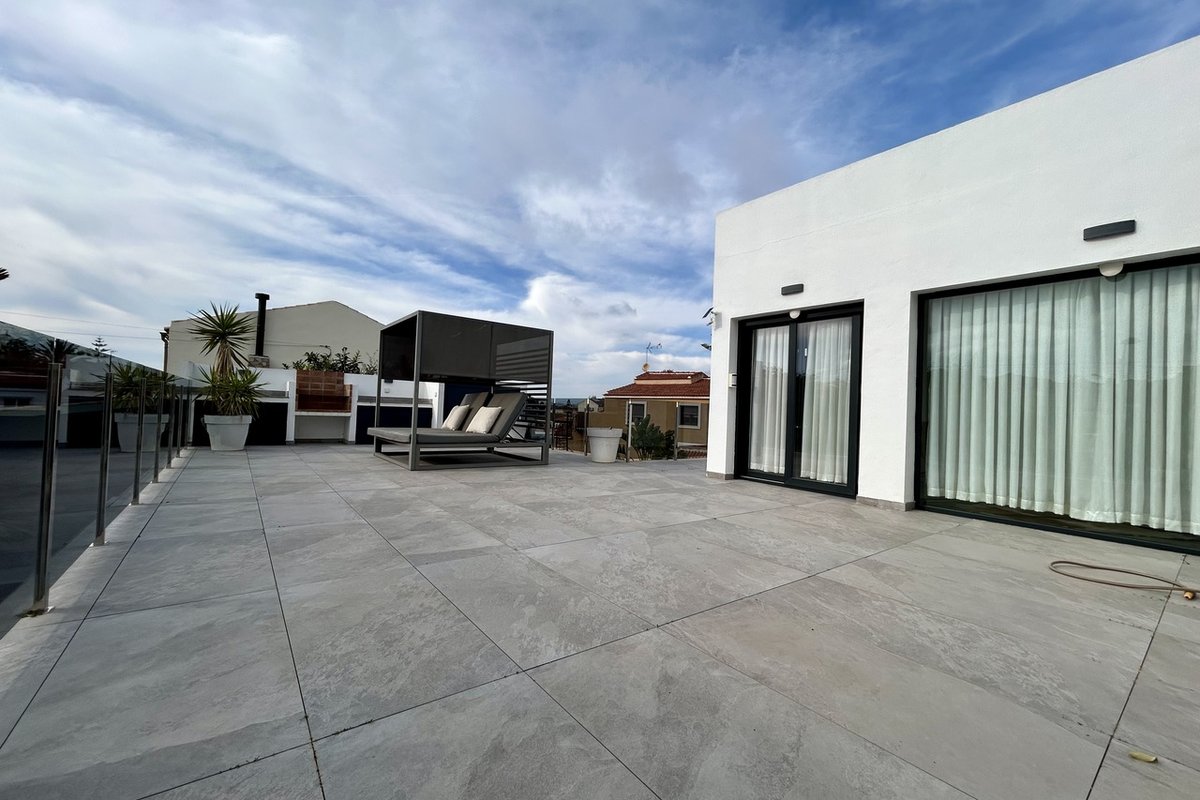 Step into pure luxury with this stunning 3-bedroom, 4-bathroom villa in the prestigious residential area of Los Balcones, set on an impressive 1,000 m² plot and designed to deliver true wow-factor living inside and out.From the moment you arrive, the property makes a statement with a large private driveway accommodating multiple vehicles, beautifully framing the home’s elegant façade and expansive outdoor spaces.As you enter, you’re greeted by a stylish welcome area — the perfect setting to host friends and family for drinks before dinner. This flows seamlessly into a refined dining area and a contemporary open-plan kitchen with island, ideal for social cooking and entertaining. From here, you have direct access to the rear terrace, where lush greenery creates a tranquil backdrop for outdoor dining and relaxation.The first level features a spacious living room, a utility room, and a generously sized bedroom with extensive wardrobe space and its own en-suite bathroom. An additional bathroom on this level ensures convenience for guests and everyday living.Upstairs, a dedicated gaming and leisure area opens onto a large, sun-drenched terrace — a perfect retreat for relaxation or entertaining under the Mediterranean sky. This level also hosts two further bedrooms and two bathrooms, offering comfort and privacy for family and guests alike.The exterior of the property is designed for year-round enjoyment:Private swimming pool for cooling off in styleJacuzzi area for ultimate relaxationCovered seating area providing shade on hot summer daysExpansive grounds offering privacy and spaceThis remarkable villa blends luxury, space, and lifestyle in one of the Costa Blanca’s most desirable locations, close to amenities, golf courses, and the coastline.An extraordinary home for those who expect nothing but the best.