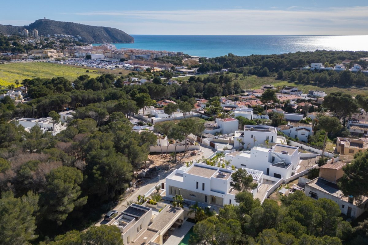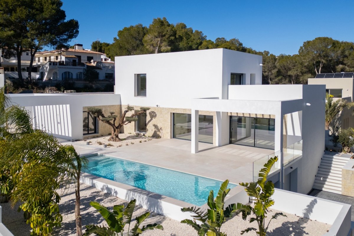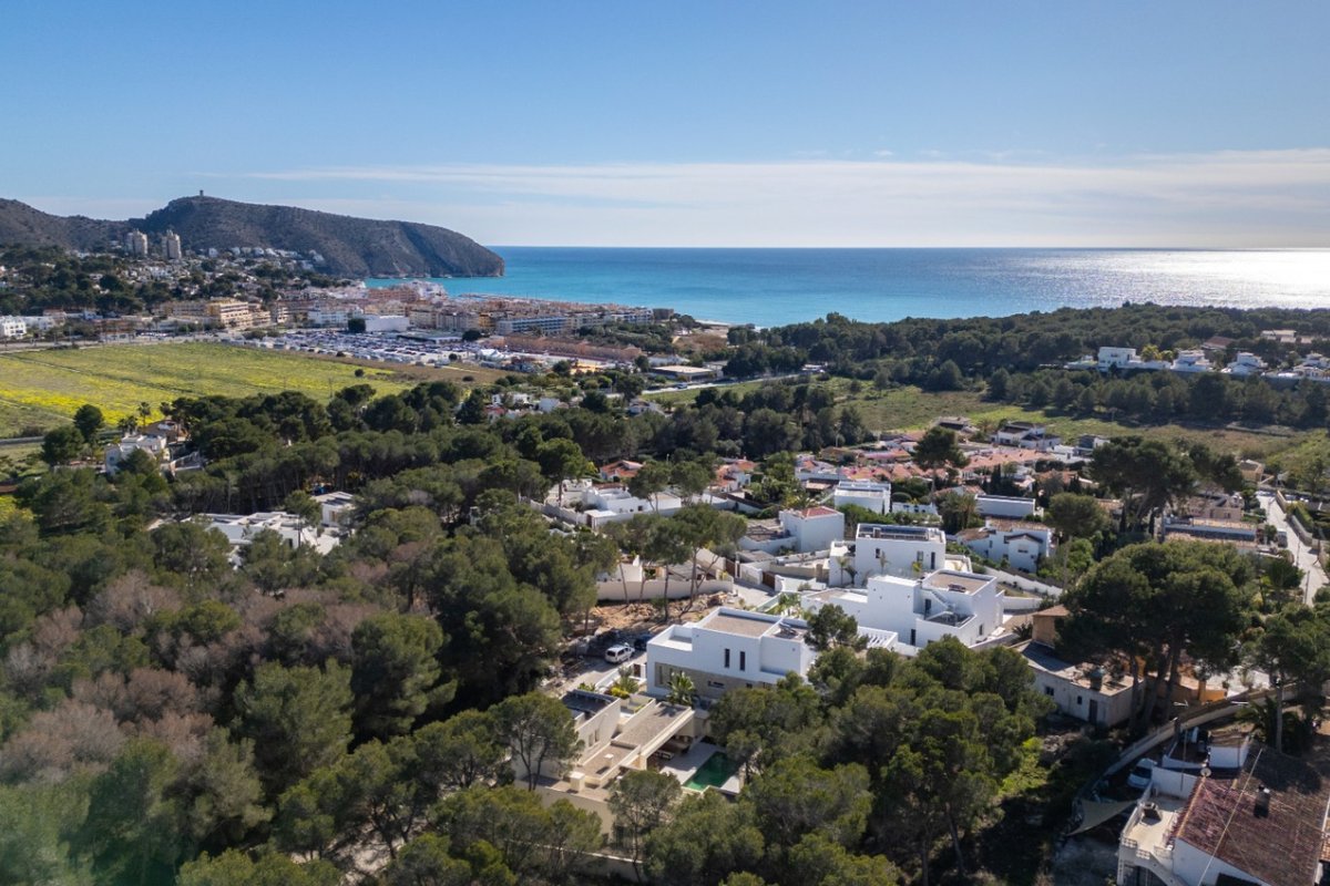 In the charming heart of Moraira, in the province of Alicante, lies this modern villa with sea views, a magnificent investment opportunity. With a privileged location, Moraira offers an idyllic environment, surrounded by stunning landscapes, beaches, and the warmth of Mediterranean culture.Moraira is known for its natural beauty, with hills that provide irresistible panoramic views and access to stunning beaches just minutes away.This luxurious modern villa stands out for its potential and versatility. In total, there are 4 bedrooms, 3 bathrooms, and a guest toilet. It is distributed as follows:Basement:Garage for 4 cars with automatic doorGround floorMain entranceUtility room with sink, Miele washing machine and dryer.Guest bathroom3 bedrooms with built-in wardrobes2 bathrooms with showerKitchen with a Santos island featuring Miele appliances, white Silestone countertop, and oak finish cabinetryLarge sliding windows leading to the terraceWooden pergolaLarge terrace with sea viewsPool with high-quality mosaic tiles + heat pump + automatic cover by Dekobo with solar sheetsBBQ pre-installationFirst floorMaster bedroom with ensuite bathroom + private terrace with sea viewsBuilt-in wardrobesGeneral information:Wooden front doorFloor-to-ceiling interior doorsUnderfloor heatingDucted AC with Airzone system for temperature control by areaStairs with glass railingWater system for collecting rainwater or water supply for irrigationSolar thermal collectorPre-installation for alarm system (= indoor detectors ¬ outdoor perimeter cameras)Video intercom
