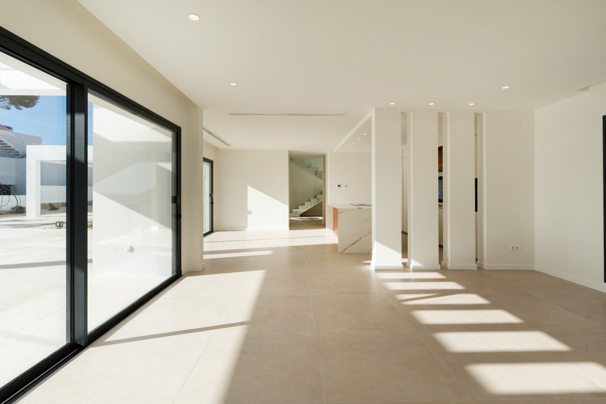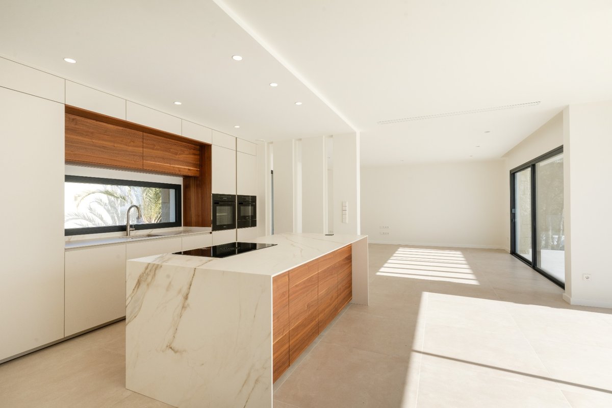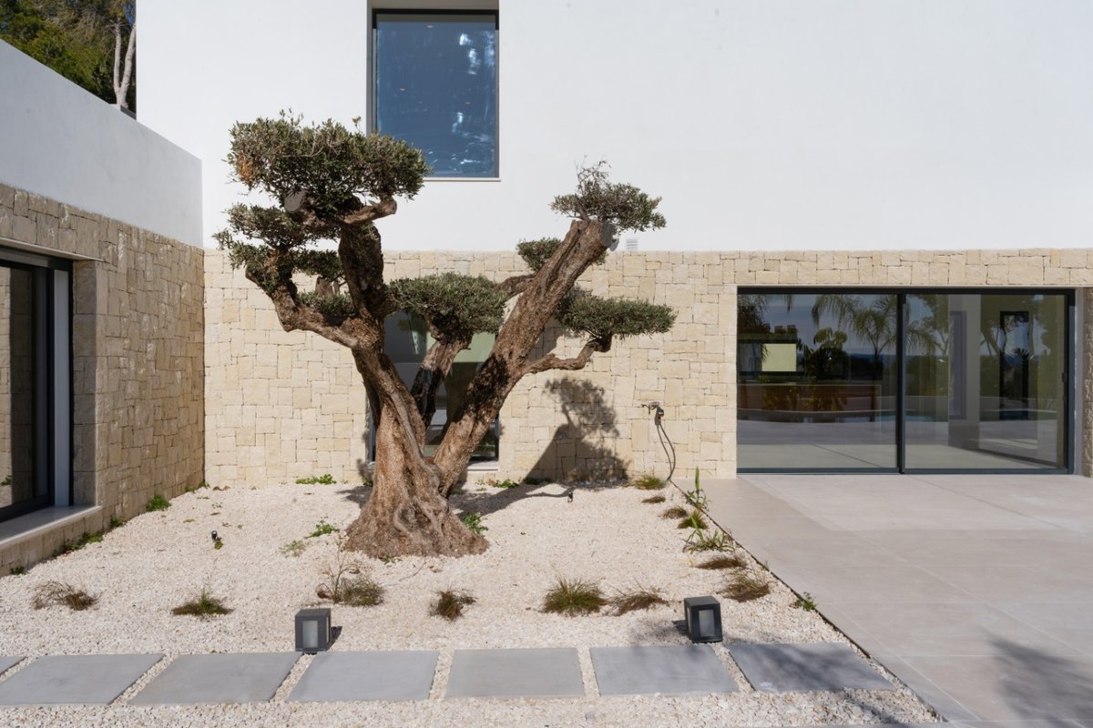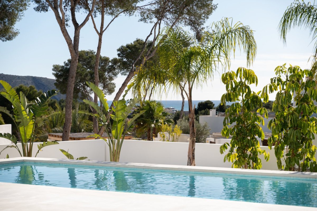 In the charming heart of Moraira, in the province of Alicante, lies this modern villa with sea views, a magnificent investment opportunity. With a privileged location, Moraira offers an idyllic environment, surrounded by stunning landscapes, beaches, and the warmth of Mediterranean culture.Moraira is known for its natural beauty, with hills that provide irresistible panoramic views and access to stunning beaches just minutes away.This luxurious modern villa stands out for its potential and versatility. In total, there are 4 bedrooms, 3 bathrooms, and a guest toilet. It is distributed as follows:Basement:Garage for 4 cars with automatic doorGround floorMain entranceUtility room with sink, Miele washing machine and dryer.Guest bathroom3 bedrooms with built-in wardrobes2 bathrooms with showerKitchen with a Santos island featuring Miele appliances, white Silestone countertop, and oak finish cabinetryLarge sliding windows leading to the terraceWooden pergolaLarge terrace with sea viewsPool with high-quality mosaic tiles + heat pump + automatic cover by Dekobo with solar sheetsBBQ pre-installationFirst floorMaster bedroom with ensuite bathroom + private terrace with sea viewsBuilt-in wardrobesGeneral information:Wooden front doorFloor-to-ceiling interior doorsUnderfloor heatingDucted AC with Airzone system for temperature control by areaStairs with glass railingWater system for collecting rainwater or water supply for irrigationSolar thermal collectorPre-installation for alarm system (= indoor detectors ¬ outdoor perimeter cameras)Video intercom