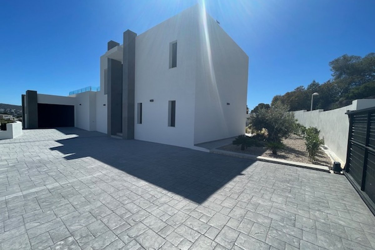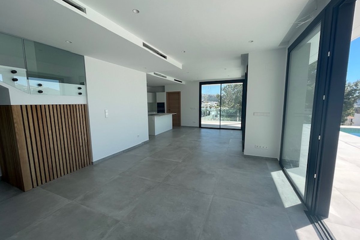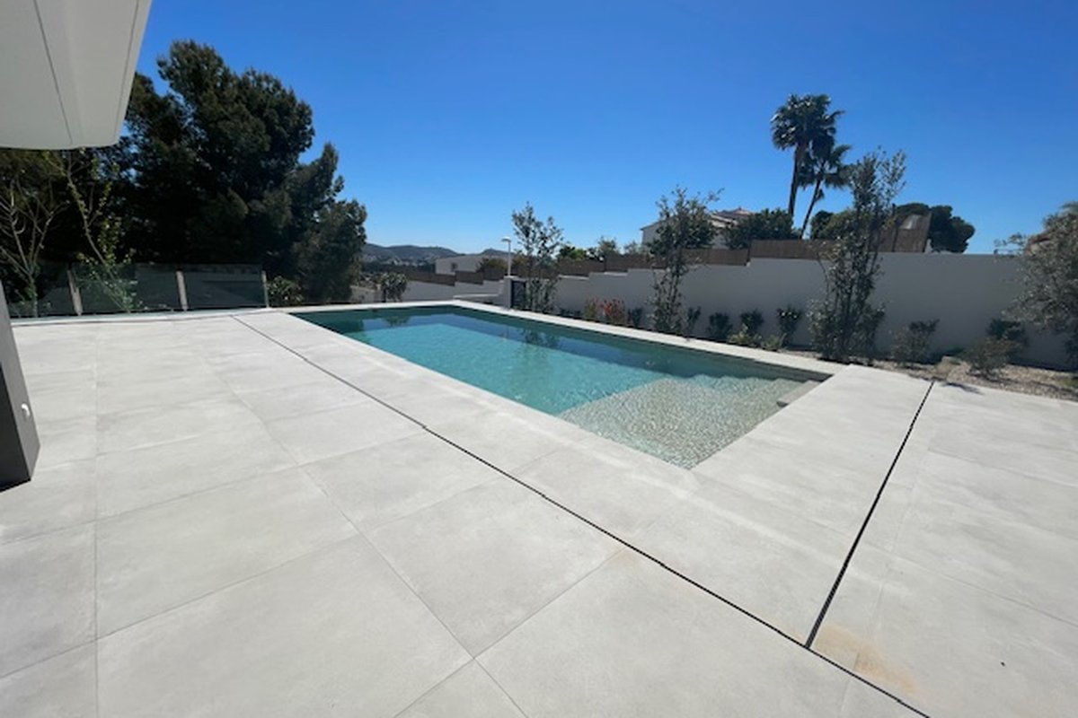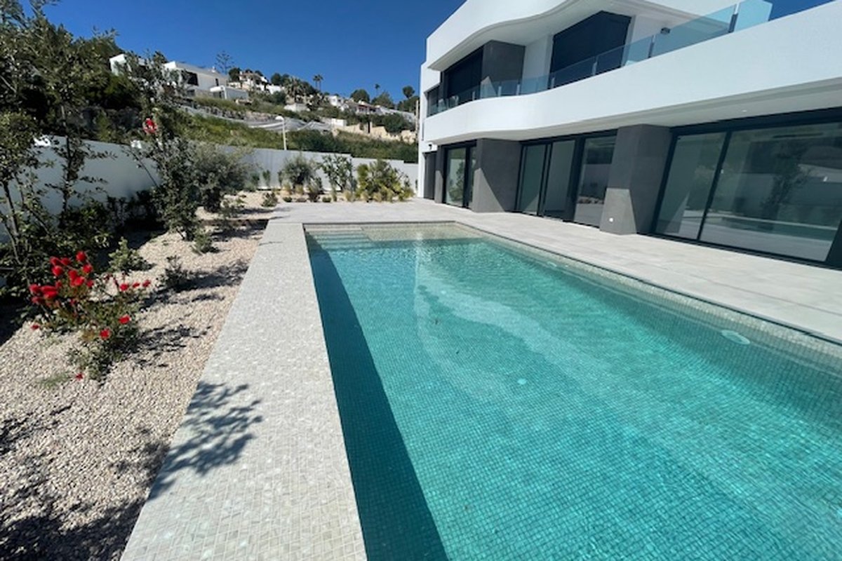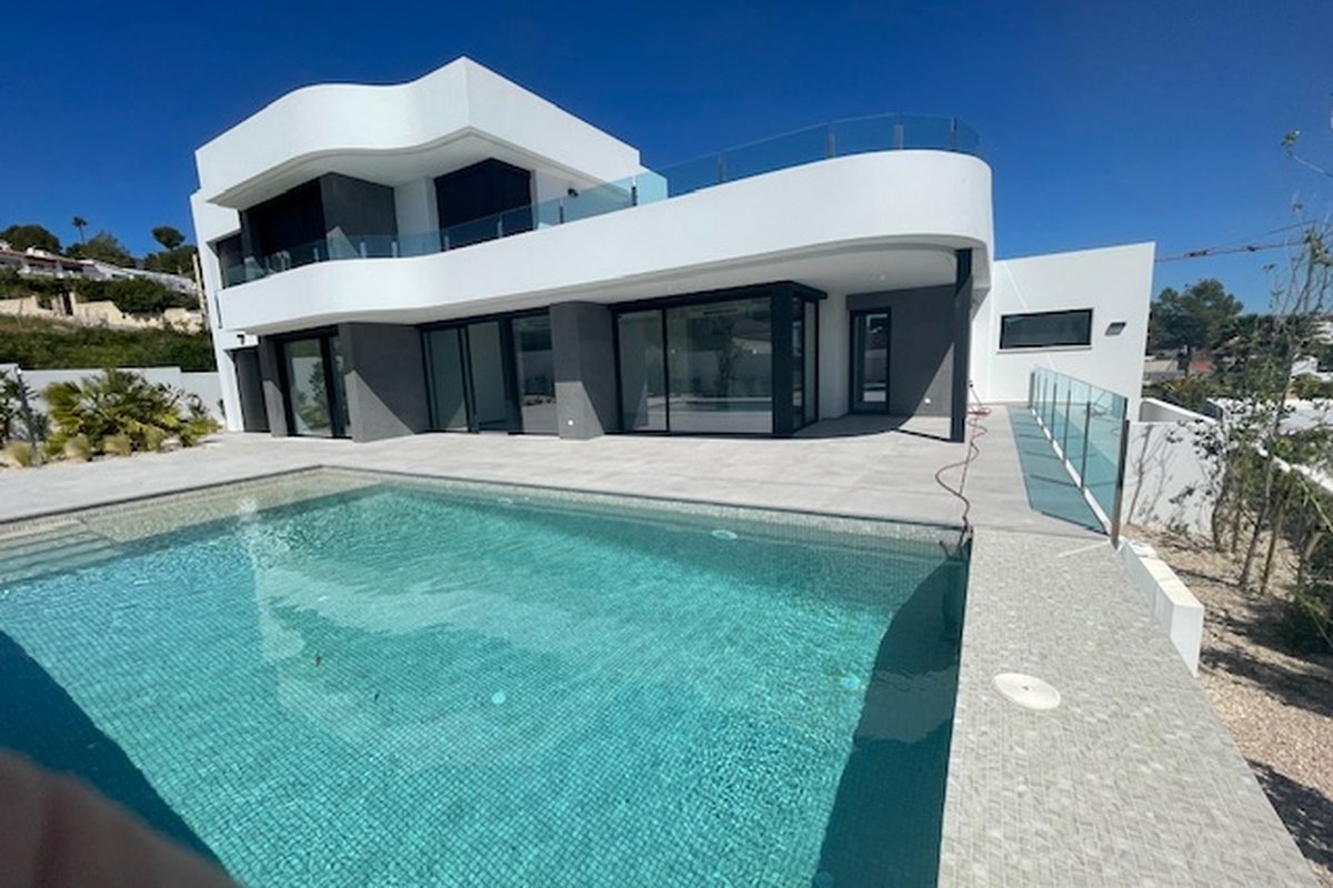 Discover Your Retreat in Moraira, a Modern Luxury VillaThis exclusive newly-built chalet/modern villa in Moraira presents itself as a modern gem, designed to offer a lifestyle that combines luxury, comfort, and a connection to nature. With a contemporary design and a south-facing orientation that ensures natural light throughout the day, every corner of this property invites you to enjoy the tranquility of the Costa Blanca.Spacious and Comfortable AreasThe villa features four bedrooms and four bathrooms, ideal for families or groups seeking a spacious home where each member can enjoy their privacy. The open layout maximizes the sense of space, while high-quality finishes guarantee a cozy and sophisticated atmosphere.Luxury AmenitiesThe property is equipped with ducted air conditioning and underfloor heating powered by an aerothermal system with individual thermostats, ensuring that each room is maintained at the ideal temperature all year round. The luxury kitchen from the German brand Bulthaup, highlighted by its island and high-quality finishes, becomes the heart of the home, perfect for those who enjoy gastronomy and socializing. From the living area, you can access a spacious terrace and the pool area.A Relaxing EnvironmentThe exterior of the villa does not fall short; the spectacular infinity pool provides the perfect space to relax and enjoy views of the garden and beyond. This setting creates an atmosphere of peace and tranquility, ideal for enjoying the Mediterranean climate that characterizes Moraira.Additional DetailsThe property includes a number of practical features such as a garage, several open and covered terraces, as well as a storage room and laundry room. All of this is situated on an enclosed plot of 811 m², providing security and privacy for residents. The garden, designed to be a personal oasis, complements the elegance of this villa, creating perfect spaces for outdoor gatherings or moments of meditation in nature.In summary, this chalet in Moraira is much more than just a house; it is a place where Mediterranean living dreams come true. With its modern aesthetic, luxury amenities, and serene surroundings, this property presents itself as a valuable investment for those seeking an exceptional lifestyle on the Costa Blanca.Our interior designer Luna ALBA can create an interior design project and turn this new build villa into a personalized home according your taste. Design Villas Moraira has its own buildng team, including an architect and an interor designer.
