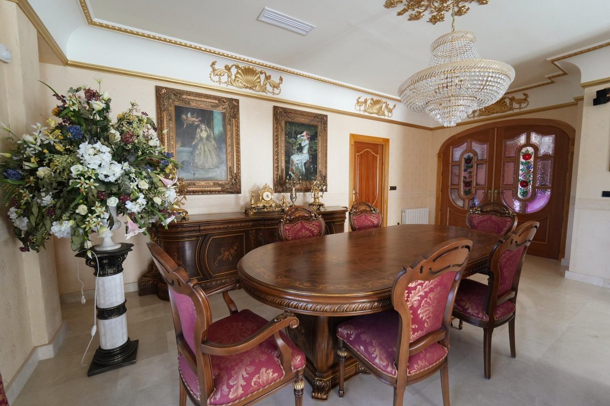 Luxury three-level villa for sale with a total area of 734 m², built in 2000 on an 850 m² plot in a natural pine forest of the Mediterranean resort town of Campoamor, in the municipality of Orihuela Costa, Alicante, Spain. Imagine waking up to the sound of pine trees, the scent of the sea, and sunlight streaming through large windows. This home is located in a prestigious area with a pine forest on one side and sea views on the other. Just 300 meters to Playa de Campoamor — and you are already walking barefoot on warm sand. Space for living, family, and enjoyment The house includes: - 7 spacious bedrooms - 6 bathrooms - Elegant living room with 3 m high ceilings - Home office - Laundry room - Garage for 3 cars - Workshop and boiler room - 2 open and 2 covered terraces Two kitchens — maximum comfort - Main kitchen-dining area for family and guests - Separate auxiliary kitchen for frying and cooking aromatic dishes Private area with swimming pool - 4×8 m swimming pool (fully renovated: tiles, pipes, filtration) - New utilities on the plot - Lighting and modern security system - Cozy courtyard for relaxation and family gatherings Year-round comfort - Central air conditioning - Radiator heating with copper pipes - Diesel boiler - Marble floors - Security alarm system - Cable internet The house is fully furnished and equipped with appliances. Why is this house a rare find? - 5 minutes’ walk to the sea - Panoramic views: forest + sea - Large area and smart layout - All renovations already completed - Ideal for living, vacation, or investment This is more than just a house. It is a place you will want to return to — to watch sea sunrises, spend evenings by the pool, and create lifelong memories.