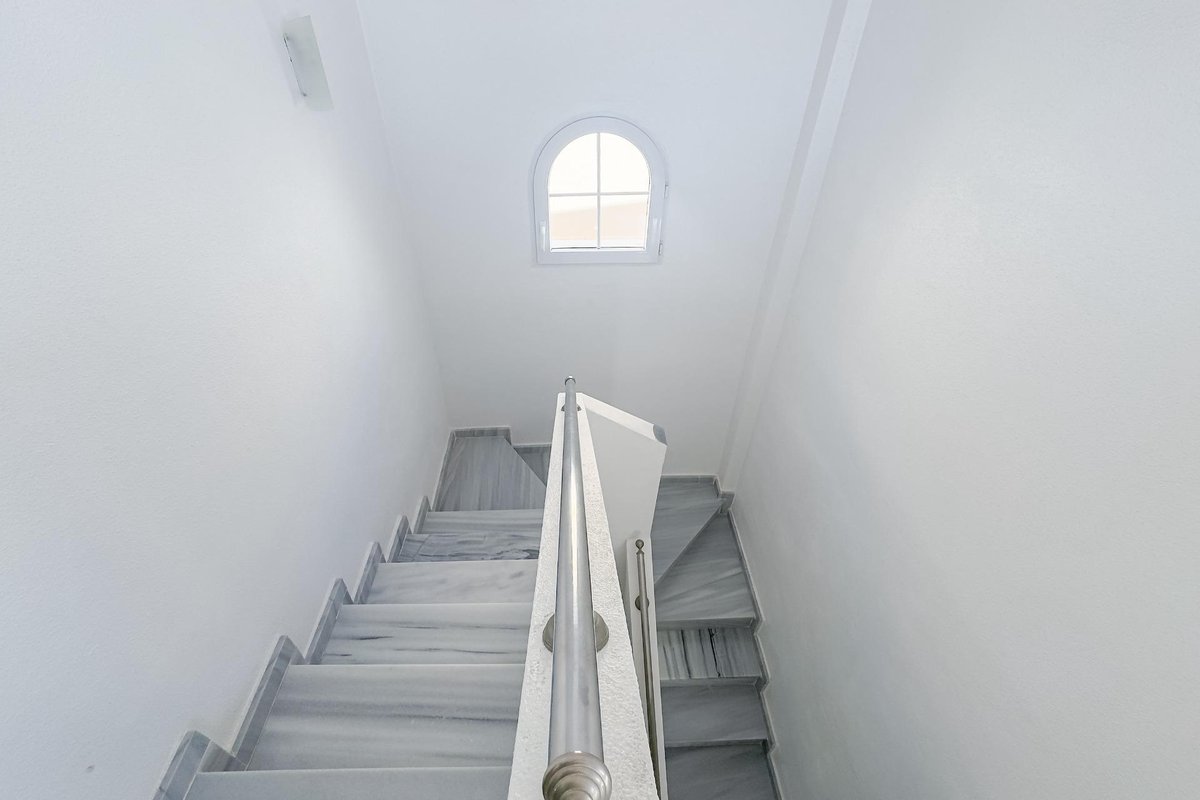 WONDERFUL DETACHED VILLA (approx. 105 m² + TERRACES) WITH GARDEN, TERRACES FACING SOUTHEAST, AND LARGE COMMUNAL POOL! Spacious villa, modernly renovated, and strategically located in Los Almendros between Torrevieja and La Zenia, close to both the AP7 and supermarkets, schools, and other services. In just over 10 minutes by car you reach the centre of Torrevieja, and in just over 5 minutes both the large shopping centre la Zenia Boulevard and the beautiful beaches of Punta Prima. A wonderful house to live in all year round! KEY FEATURES: –Well-maintained gated community with large pool area. –Garden/terrace (approx. 80 m²) with barbecue. –Ground floor: Entrance, large living room with gas fireplace, large independent kitchen (fully equipped), 1 WC, and 1 bedroom (now used as an office). –Floor 1: 1 bathroom (with shower) and 2 large bedrooms, one of which has access to the large balcony facing southeast. –Floor 2: 1 large bedroom, laundry room, and a large terrace, also facing southeast. –Very well maintained – recently renovated and everything still in perfect condition, fully furnished and ready to move into immediately! OTHER ADVANTAGES: –Parking on private street within the community. –Heating (fireplace and radiators) and hot water with natural gas. –Modern AC (air source heat pumps – 5 units) on all three floors. –Close to several supermarkets (Aldi 400 m, Consum 700 m) –Schools within walking distance – 1.5 km to CEIP Colegio Público Playas de Orihuela. –Good public transportation – 700 m to the bus stop (Torrevieja city buses - Line E). –By car about 10 min (6 km) to Torrevieja city centre and about 5 min (3 km) to La Zenia and to the beaches of Punta Prima. –Several golf courses within about 15 min by car. –Community fees: about €29/month. The house was originally built in 2002 but has been recently renovated. The bathrooms are in a modern style, and in the fully equipped kitchen you have both modern appliances, drinking water filter, and of course a modern gas hob, since the house is connected to the natural gas network. Both heating (fireplace and radiators) and hot water are via natural gas, which is normally the cheapest energy source (installation inspected in 2025). However, you also have modern AC (air source heat pumps) throughout the house. And, even though the house is not renovated this year, everything is still in perfect condition, fully furnished and ready to move into immediately! The Los Almendros area is formally located in Orihuela Costa, but is closely intertwined with Los Balcones and Torrevieja. It is a quiet residential area with villas and townhouses, very popular with families with children, and where a lot of new construction has been built in recent years. With only 45 minutes to Alicante airport, it is also attractive for those who do not live there all year round, not least for golf enthusiasts, as there are many nice golf courses nearby. And with just over 10 minutes to both Torrevieja, the third largest city in the Alicante province and with more than 110,000 inhabitants, and to all the popular areas of Orihuela Costa (La Zenia, Playa Flamenca, Cabo Roig etc.), it is of course easy to both commute to work and reach the wonderful beaches along the coast. Don't miss out on this spacious and very well-kept villa. A wonderful house to live in all year round! Contact us today for a viewing!
