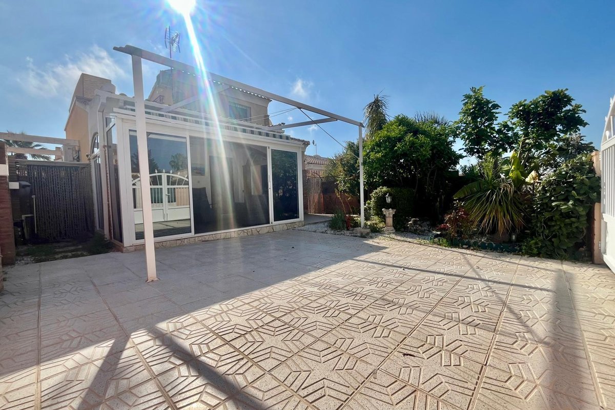 Detached villa with solarium and option for private pool in Las Mimosas – Orihuela Costa Enjoy sunshine all year round just 2 km from the sea ☀️ A detached home full of potential, with generous outdoor space and the option to build your own private pool for only €15,000. Perfect as a permanent residence or a smart investment in one of the most sought-after areas of Orihuela Costa. Detached villa for sale in the exclusive area of Las Mimosas, Orihuela Costa. Located in a მშვიდ and pleasant environment, this property offers the perfect balance between privacy and proximity to the sea, just 2 km from the beautiful beaches of Orihuela Costa—ideal for enjoying the Mediterranean lifestyle all year round. The property benefits from a west-facing orientation, ensuring excellent natural light in the afternoons and creating a warm and inviting atmosphere. It is equipped with air conditioning for maximum comfort throughout the year. The villa features 2 spacious bedrooms and 2 bathrooms, including a master bedroom with an en-suite bathroom and direct access to a large solarium—perfect for relaxing or enjoying the views. There is also the possibility of creating a third bedroom on the ground floor by enclosing part of the L-shaped living room. Outside, the property offers multiple storage rooms and plenty of space around the house, providing extra convenience and flexibility. There is also a dedicated laundry area. The property includes access to a communal swimming pool and offers the possibility of building a private pool for an approximate cost of €15,000, adding even more value and exclusivity. An excellent opportunity as a permanent home, holiday retreat, or investment in one of the most desirable areas of Orihuela Costa.