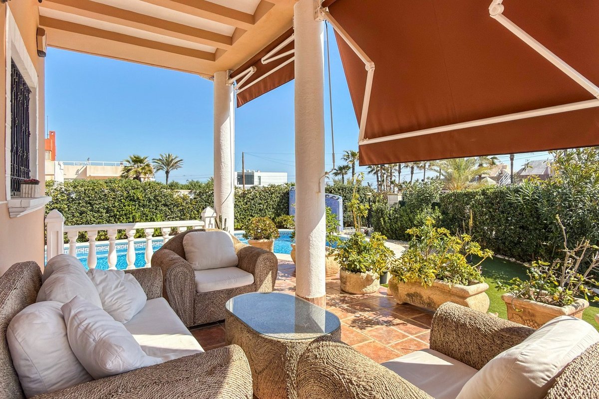 Located in the prestigious residential area of Molino Blanco, this exceptional luxury villa offers space, privacy, and an elevated Mediterranean lifestyle on a generous 800 m² plot.With a total built area of 440 m², the property is distributed over two main floors plus a fully equipped semi-basement designed as an independent living space — perfect for guests or extended family.The villa features six spacious double bedrooms and five fully equipped bathrooms, making it ideal for large families or those who enjoy hosting. Each level offers bright and elegant living and dining areas, creating multiple spaces to relax and entertain.At the heart of the home, you’ll find a large independent kitchen with direct access to the garden — perfectly designed for both everyday living and social gatherings.The outdoor areas truly elevate this property. A stunning private swimming pool is surrounded by a lush, landscaped garden, offering a peaceful and private retreat under the Mediterranean sun. A covered porch and pergola with a built-in barbecue create the perfect setting for unforgettable moments with family and friends.The property is equipped with modern comforts including centralized heating, air conditioning, and a full alarm system for security and peace of mind.Located within an exclusive residential complex, the community also benefits from ongoing maintenance services, including professional gardening, ensuring the surroundings remain pristine all year round.