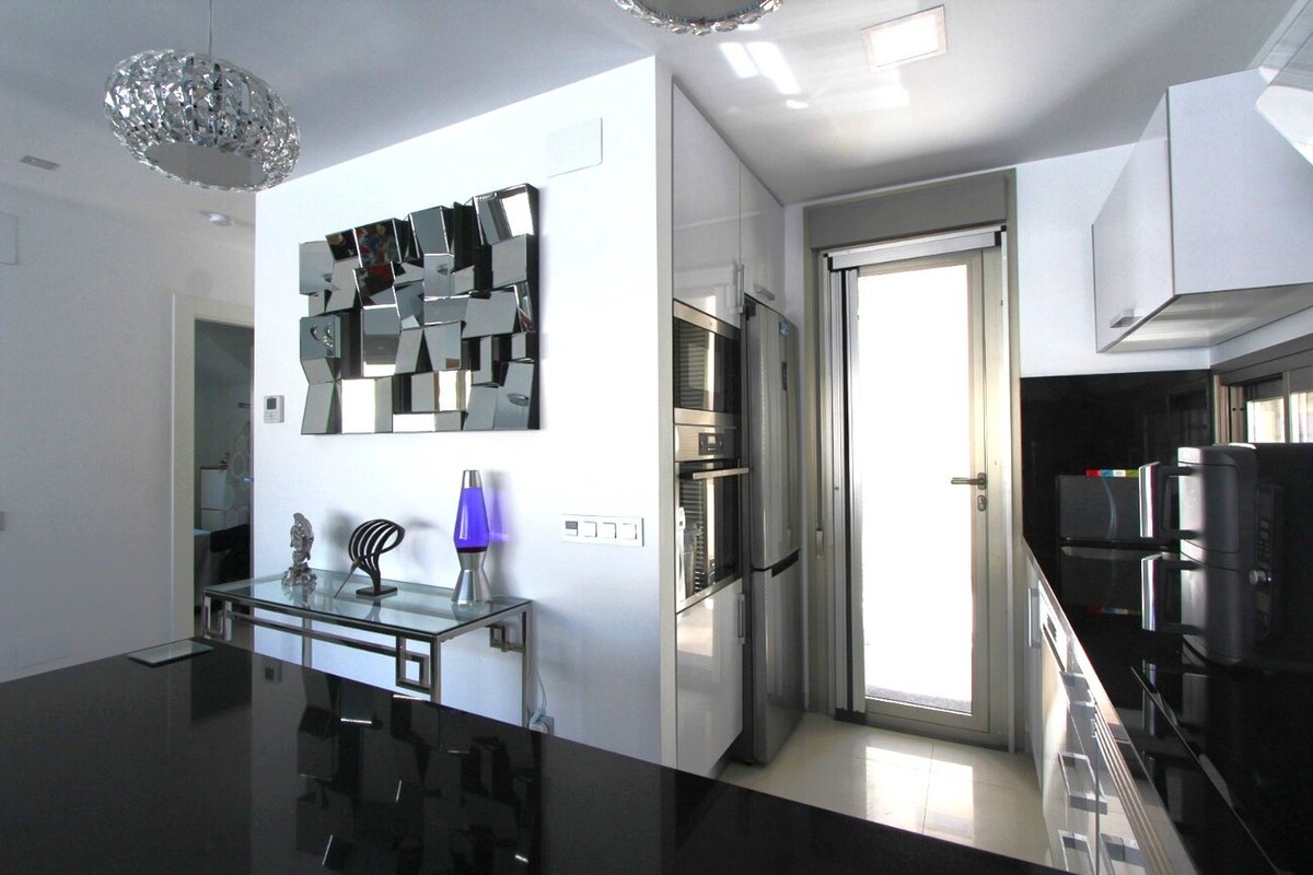 Completed in 2022, this fabulous 3 bed (potentially 5), 4 bath contemporary style new-build villa is the finest example of the Don Benito style villas, incorporating every conceivable ‘extra’ and the very highest specification. Conveniently located in the El Galan urbanisation nr Villamartin and close to all amenities and numerous golf courses, it’s situated only a few minutes to both the Villamartin Plaza and La Fuente Commercial Centre as well as being less than a 7 minute drive from the fabulous La Zenia Boulevard and those amazing Costa Blanca beaches!Internally, this incredible property comprises two stories with an additional under-build and rooftop solarium, all of which benefit from hot/cold air conditioning. On the ground floor you will find one of the three double bedrooms together with a full family bathroom including shower. There is a spacious open-plan kitchen and dining area incorporating a well appointed modern kitchen equipped with all of the modern facilities you would expect and giving access out to the covered utility and storage area which also houses a washing machine. The lounge area enjoys full height, double-glazed sliding doors along the length of the external wall giving direct access out onto the sun drenched covered terrace area and large 6x3m private swimming pool. Fully tiled and privacy screened, the outside area offers usable space around the entirety of the property and incorporates a useful utility area to the rear as well as a covered car parking space and driveway to the left of the villa. This outside space is what Spanish living is all about – sunshine, socialising and relaxing with a fantastic pool (with outdoor shower) to take a dip in when the sunshine gets too much!Stairs lead to the first floor accommodation which features two double bedrooms both of which benefit from their own en-suite bathrooms, fitted wardrobes and retractable insect window screens. The master bedroom also offers access via glazed sliding doors onto a private balcony – the perfect spot to enjoy your morning cafe au lait. A second internal stairway leads to the amazing private rooftop solarium complete with aluminium pergola for shade, a BBQ area also complete with pergola and a handy shower area. This privileged spot offers the perfect relaxation and entertaining space with views across the parkland – as well as guaranteeing the perfect year round sunbathing spot.In addition to the superb internal and outdoor living accommodation, this fantastic villa also benefits from an incredible 56 sqm under-build which was a built as part of the original construction as a developer ‘extra’. This incredible space is fully finished and comes complete with a fully fitted bathroom. Currently being used as a workshop and a music & cinema room, this space offers the flexibility to be used as additional self-contained guest accommodation and would easily provide two further bedrooms in addition to the existing three, potentially making this a five bedroom, four bathroom luxury home……. Or you could just leave it as every husbands (and wife’s!) dream ‘Man Cave’!Location, quality and value combine to make this property a truly exceptional prospect for anyone seeking the ultimate villa with easy access to all that the Costa Blanca has to offer – walking distance to the best bars, restaurants and shopping and only a few minutes drive from the Mediterranean and those golden beaches – what more could you want?The property comes part furnished with most items included as shown.