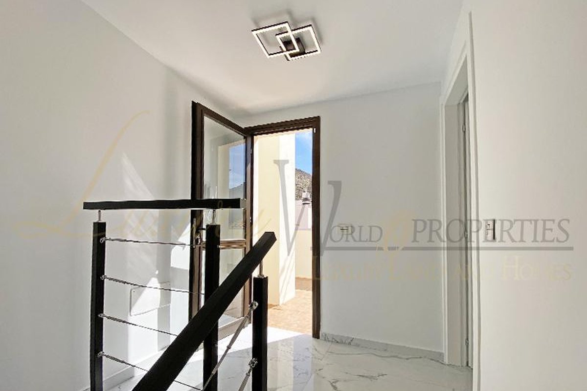 Elegant Residence with Panoramic Views and Exceptional Amenities in Fañabé Pueblo. Luxury World Properties is pleased to offer this exceptional house in the complex Alondras 1, situated in the charming surroundings of Fañabé Pueblo. With a total area of 175 m2, this modern and spacious property provides a sophisticated and comfortable lifestyle. Upon entering the house, you are greeted by a bright and welcoming living-dining area, perfect for gathering with family and friends. The American kitchen, equipped with an elegant central island, invites residents to enjoy culinary moments while enjoying the company of their loved ones. Additionally, on this floor, there is a convenient guest toilet. Ascending the stairs, you reach the second floor, where three meticulously designed bedrooms are located, each with fitted wardrobes to maximize space and maintain aesthetic harmony. Two full bathrooms, one of them en suite, complete this level, offering comfort and privacy to residents. The last floor of the house provides a tranquil retreat in the form of an additional bedroom and a spectacular rooftop terrace. From here, you can enjoy panoramic views spanning from the majestic mountains to the sparkling sea, with the island of La Gomera as a backdrop. Convenience is enhanced by direct access from the spacious garage, facilitating the loading and unloading of vehicles and shopping. Additionally, the house features air conditioning in all rooms, ensuring a pleasant indoor climate throughout the year. The current owner has paid special attention to luminosity, predominantly using LED lighting throughout the property to create a warm and welcoming ambiance. This property is more than just a house; it is an oasis of tranquility and elegance amidst stunning natural surroundings. Ideal for families seeking a home where they can relax and enjoy the beauty of Tenerife, this residence offers a unique opportunity not to be missed. Contact us today to explore all the wonders this house has to offer!