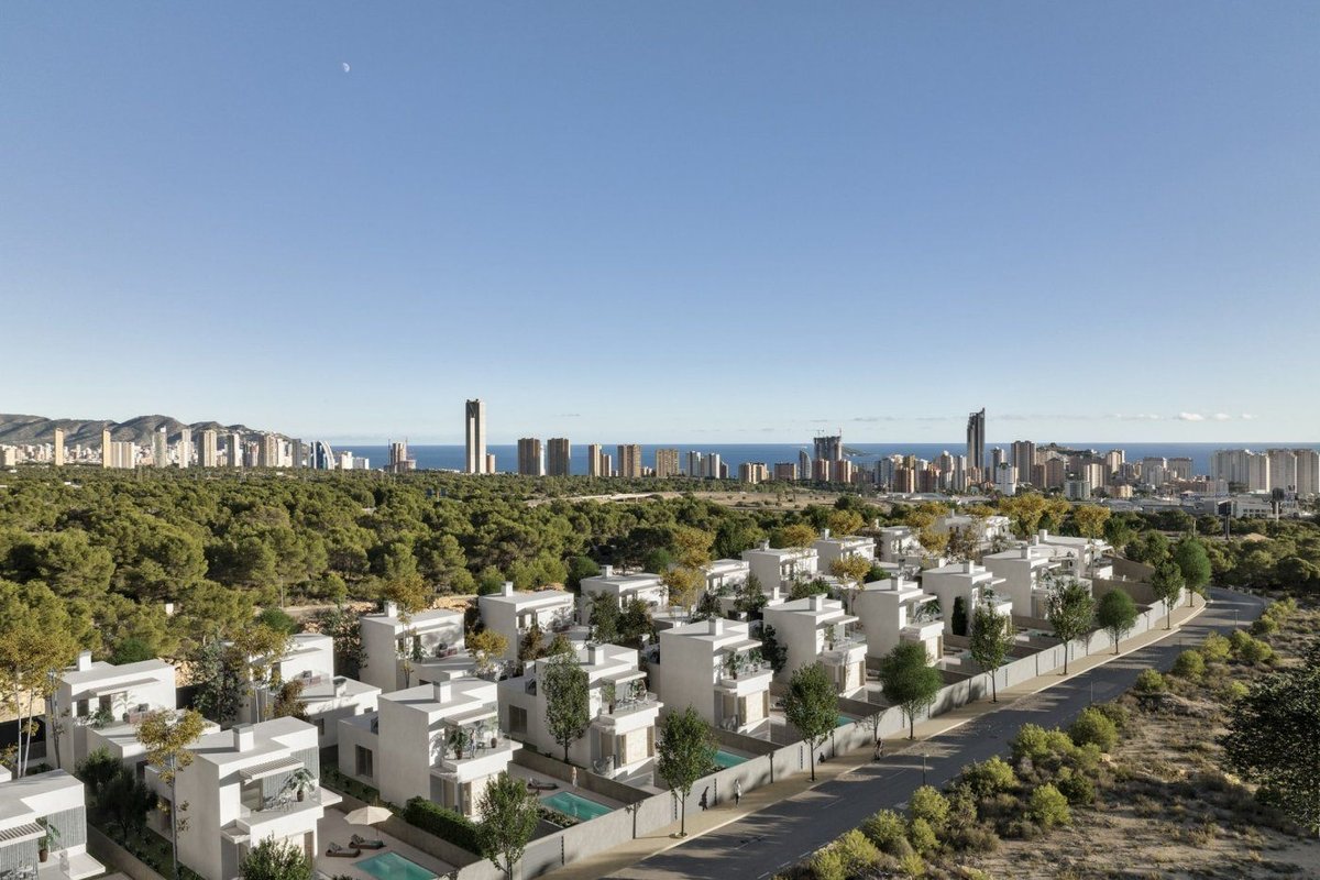 NEW BUILD VILLAS IN FINESTRAT New Build residential of 30 independent villas of avant-garde design in Sierra Cortina, Finestrat, in the heart of the Costa Blanca, a luxury development where you can enjoy a unique environment of tranquillity. Villas build over 2 floors, has 3 bedrooms, 3 bathrooms, guest toilet, open plan kitchen with lounge, build-in wardrobes, terraces, private garden with the pool and basement with the garage Residential located in the Sierra Cortina resort complex, next to two golf courses, theme parks, a large shopping centre and a few minutes from the beaches of Benidorm. Finestrat located in the Marina Baixa region of the Costa Blanca, close to neighbouring Benidorm and about 40 kilometres from the city of Alicante and the international airport. The village is situated on the mountainside of Puig Campana and offers beautiful views of the mountains, the coast and the Mediterranean Sea.~