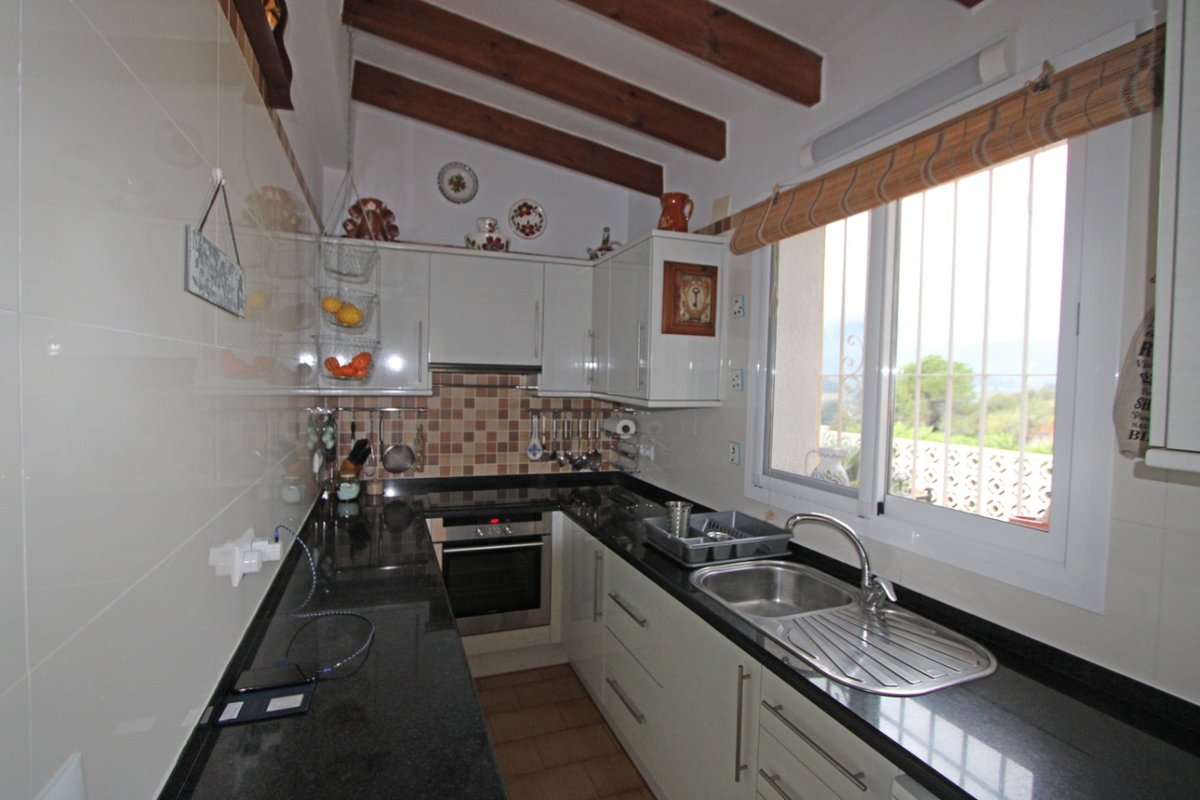 Nestled in a privileged location overlooking the breath-taking Jalón Valley, this charming three-bedroom villa offers the perfect blend of comfort, privacy, and spectacular scenery.The property features three spacious bedrooms and two bathrooms, one of which is en-suite, a well-appointed living area with a working wood burner as the main feature, a glazed naya, and a fully fitted galley kitchen. The home is thoughtfully designed for both relaxation and entertaining. Central heating throughout ensures year-round comfort, making the villa ideal for permanent living or as a holiday retreat.Outside, the villa truly shines. A large terrace provides the perfect setting for al fresco dining while enjoying the stunning panoramic views across the Jalón Valley. The private swimming pool is perfect for cooling off during the warm Mediterranean summers and is surrounded by beautifully maintained gardens, creating a peaceful and private oasis.Additional practical features include a secure garage, central heating, air conditioning, double glazing, ample storage space, and traditional wooden beams that add charm and character to the property.Combining spectacular views, generous outdoor living areas, and modern comforts, this delightful villa offers a wonderful opportunity to enjoy the relaxed lifestyle of the Costa Blanca countryside. Located just a 5-minute walk from the village, with all amenities within easy reach.Viewing is highly recommended to fully appreciate the beauty and everything this property has to offer.