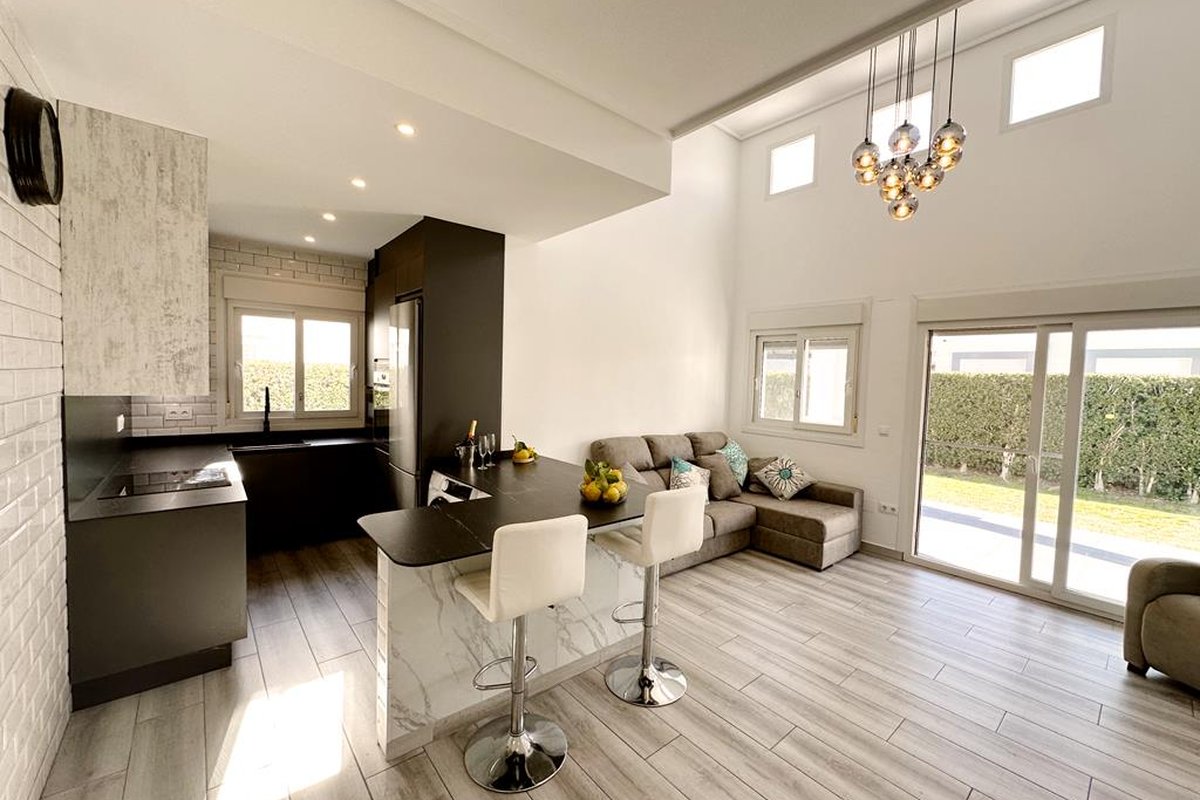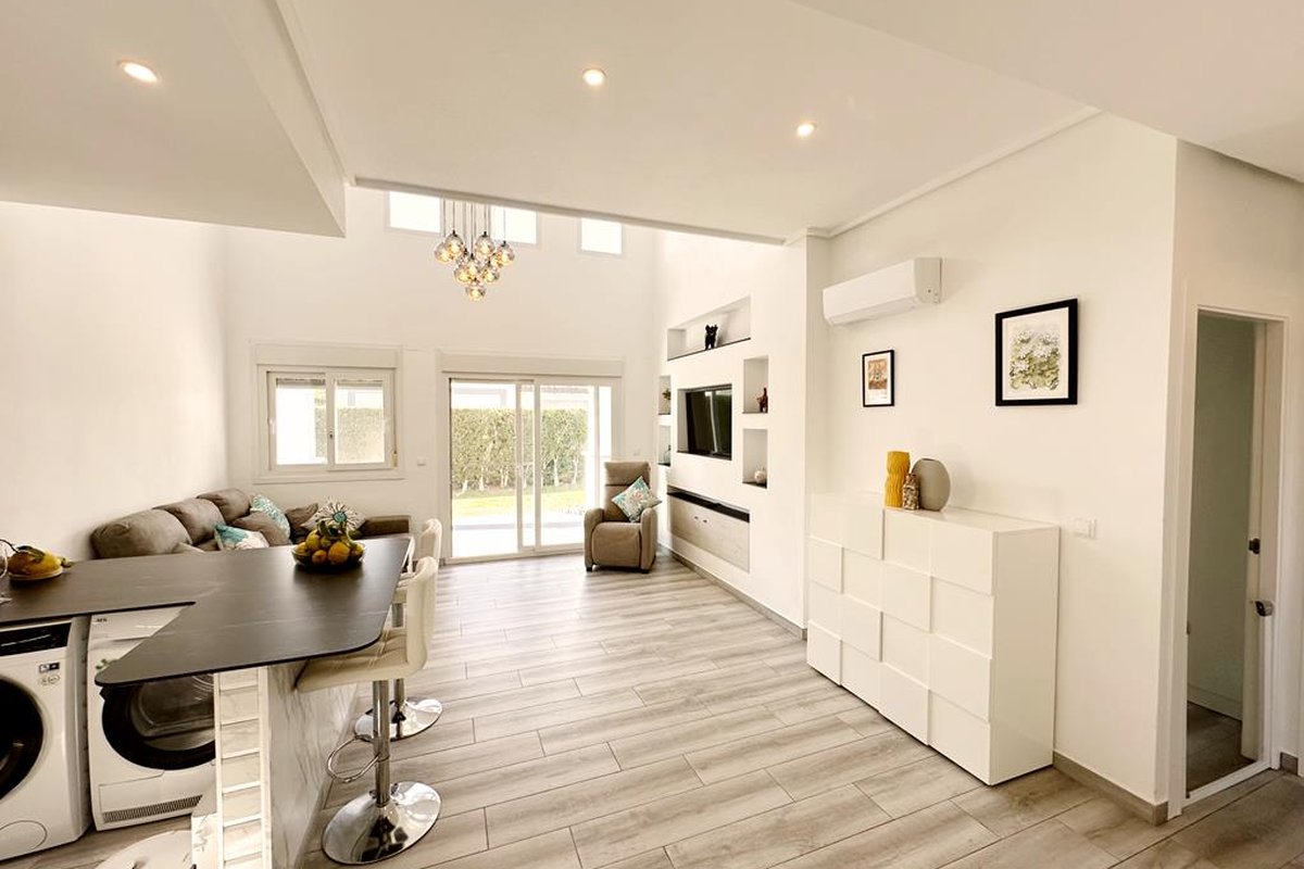 This villa must be seen to appreciate the upgrades the current owner has done. It is simply stunning and we are excited to offer this fully modernised Acebuche villa for sale on the wonderful La Torre Golf Resort. No expense has been spared with this property. The owners have extended the entrance area, added a storage room upstairs, fully retiled the solarium and added frosted privacy glass, opened up the living space with a brand new kitchen, new bathroom, rear tiled terrace with covered pergola and outdoor kitchen area, a huge shed (the perfect man cave!) and all new floorings and aircon throughout. The garden has plenty of space to add a private swimming pool. The property is situated close to the Kings College entrance of the resort and close to one of the communal swimming pools. Murcia airport is ten minutes drive along with the local village of Roldan. Onsite you have a supermarket and various bars and restaurants in the resorts town centre.The property has off road parking and an spacious storage cupboard to the front of the property. The stairs have been incorporated into the property and are situated to the right of the hallway with large storage cupboard at the top of the stairs and glazed patio access onto the tiled terrace where you can enjoy gorgeous views over the orange groves and amazing sunrises. The living space and kitchen have been opened up to create a more sociable living space with brand new kitchen and breakfast bar with built in oven, hob and microwave. Patio doors lead to the tiled terrace and lawned garden. To the left of the garden is an outdoor kitchen area with gas bbq and to the right a huge shed with tiled roof. There are two double bedrooms both with fitted wardrobes and a separate family bathroom with walk in shower. There is brand new aircon throughout, flyscreens on all doors and windows and a large storage cupboard in the living room. This is a gem of a villa, the current owners have refurbished the property entirely. Please contact us for a viewing appointment.