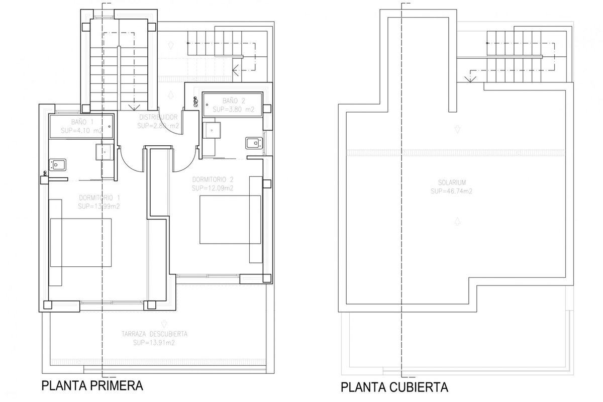 Project of 13 single-family homes, with a private pool . Homes built with you in mind. In an unbeatable environment. Owners are offered the possibility of making any type of modification they wish. They are made up of a ground floor and a first floor, with a semi-basement and a swimming pool. Each house has its private plot, with sea views from Solarium Plant. The living room, dining room and kitchen are distributed on the ground floor, through a permeable hall with wooden slats, separating the bathroom and bedroom area. Access to the pool area is at the same level as the house. On the first floor there are two en-suite bedrooms with their terraces. In the corridor there is access to the solarium, which is the flat roof of the house. In the semi-basement floor there is a fourth bedroom, bathroom, leisure area and garage space. Depending on the plot, up to two parking spaces. The houses are in a place surrounded by nature and tranquility with views of the sea. Built with top quality materials. We invite you to come and see the show house.