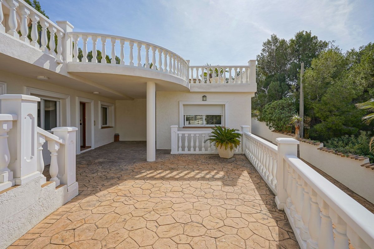 This beautiful Mediterranean villa is located in one of Altea`s prestigious urbanisations at the foot of the southern flank of the majestic Sierra de Bernia. The villa offers breathtaking views of the nearby mountain range and the vast mountainous landscape. Views include iconic mountains such as the Puig Campana and the Sierra Aitana. ~~The villa was built in 2004 and always very well maintained. Thanks to a clever layout, the entire private residence of 173 m2 is located on one floor adjacent to the pool. One floor below is a spacious separate guest house of 113 m2 and a separate room that can be converted into a studio. The guest house is internally connected to the upper floor, but also has private access. ~~An automatic gate gives access to the property with the driveway immediately splitting into two to give you the choice of parking at the entrance to the main house or at the entrance to the guest house. If you park at the main house, stairs lead to the front door. You enter a stylish hallway with a spacious, fully equipped kitchen to the right. The hallway flows into the living-dining room where you will also find a small office. Through a corridor, where there is an additional bathroom, you reach the master bedroom with walk-in wardrobe and en-suite bathroom. You can enjoy beautiful views of the landscape from all rooms. From both the living room and the bedroom, there is direct access to the poolside terrace via sliding windows. There is also a covered terrace on this floor, an outdoor kitchen with a bar and an outdoor shower. The guest house comprises a kitchen, a dining area from where you can also enjoy the beautiful views of Sierra de Bernia, a lounge, a bedroom with an en suite bathroom and two bedrooms sharing a bathroom. Opposite the guest house is a large room of about 44 m2 with several windows, ideal to transform into an extra bedroom, gym or a cosy studio. The guest house and studio share a private terrace. The villa has air conditioning in all rooms, central heating via radiators, shutters and built-in wardrobes. There is also camera security consisting of several cameras and an alarm system. The villa is surrounded by a low-maintenance garden equipped with automatic irrigation. There is also a garage. ~~Both the beach and the centre of Altea are just a 10-minute drive away. Larger towns like Calpe or Benidorm can be reached in 15 minutes. Alicante airport is a 50-minute drive away. Within walking distance of the villa is the beautiful golf club of Altea. ~~Altea is a paradise located between the mountains and the Mediterranean Sea. You only have to walk along its more than 6 kilometres of coastline to discover the wide variety of beaches, such as L`Olla, Solsida, Cap Negret, Albir, Cala del Mascarat and La Roda. These beaches are characterised by pebbles rather than sand and some coves are even hidden between large cliffs. There is also the charming old town. With narrow, cobbled streets, white houses full of colourful flowers and hidden nooks and lookouts, this is a wonderful place to stroll around. ~~Don`t hesitate any longer and come discover this fantastic villa now!~