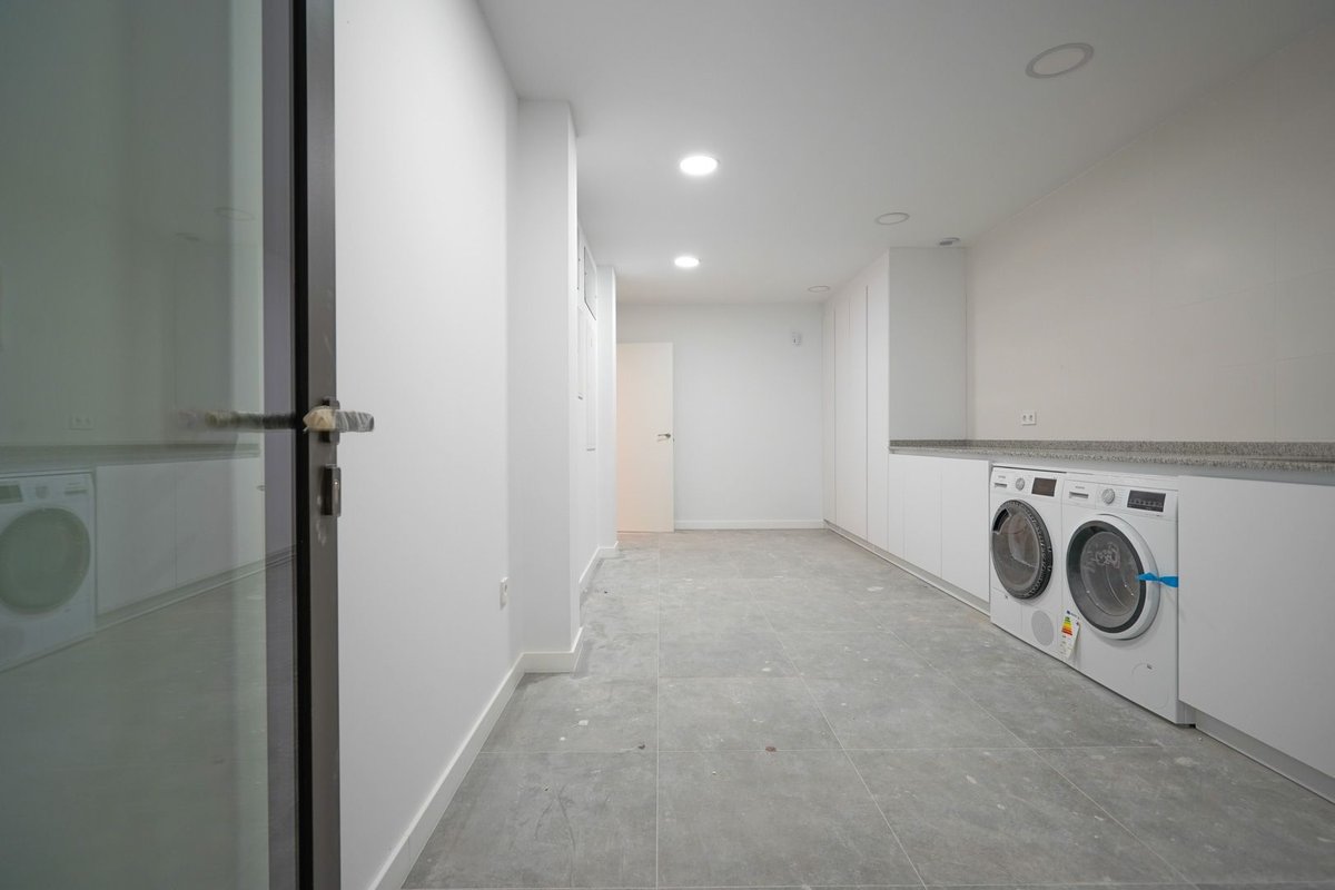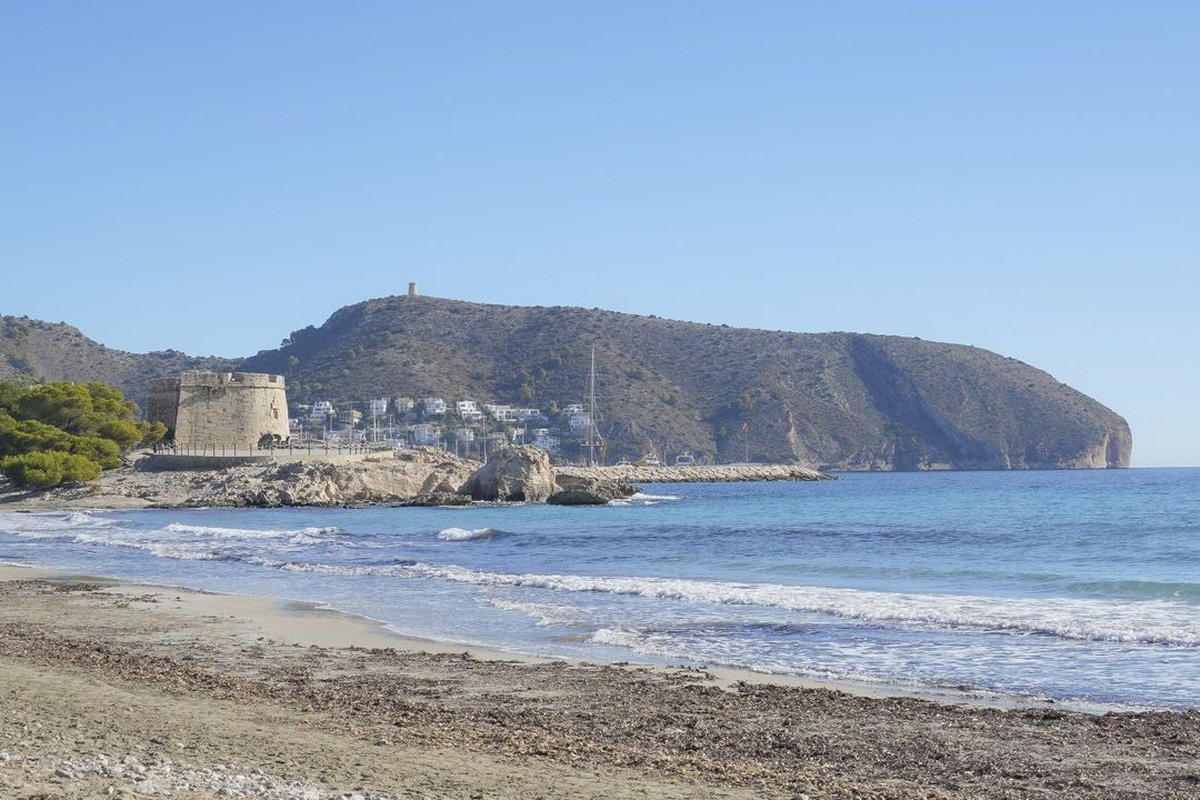 This beautiful villa is located in a quiet area less than 10 minutes from the beach and the centre of Moraira. The villa is surrounded by a wooded area and is spread over three floors. The first floor comprises a spacious living-dining room, an open-plan kitchen, a double bedroom with an en suite bathroom and a guest toilet. Through sliding windows there is access to a large partially covered poolside terrace. On the second floor you will find the master suite with a large dressing room and en suite bathroom and two double bedrooms sharing a bathroom. All bedrooms on this floor have access to a large terrace with a pergola. The ground floor consists of a garage with space for two cars, the driveway in front of the garage has parking space for two more cars. In addition, on the ground floor there is a very large laundry room, a drying room, a gym, a storage room, a technical room and an outdoor bathroom. The villa is surrounded by a low-maintenance Mediterranean garden and has automatic irrigation. The villa also has air conditioning and underfloor heating. The villa is completely finished and sold furbished.~