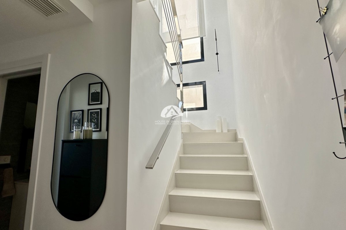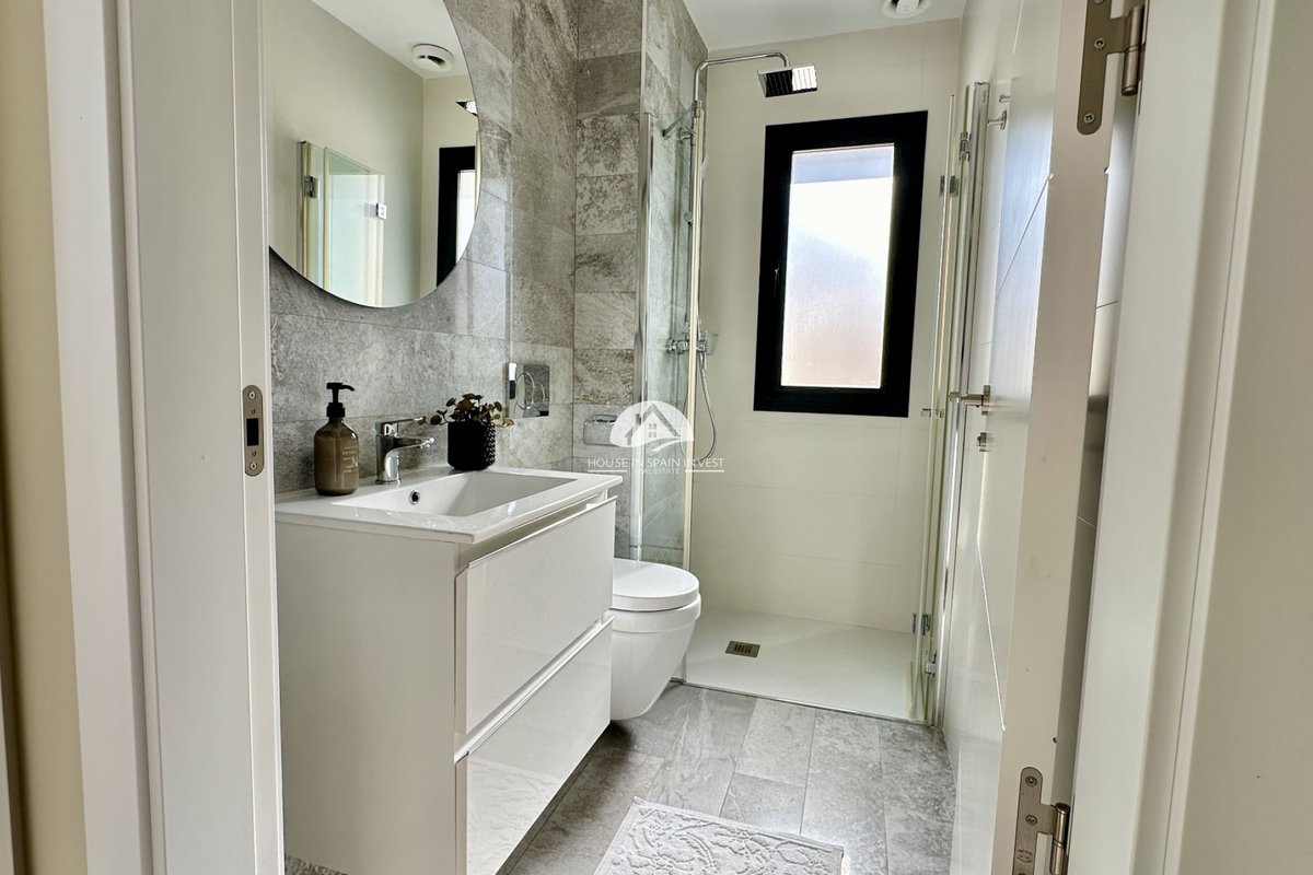 Welcome to your dream home in the heart of Lomas de Cabo Roig, one of Orihuela Costa’s most desirable residential areas. This stylish and well-maintained detached villa is ready to move into, offering a perfect blend of comfort, modern living, and Mediterranean charm. Whether you're looking for a permanent residence, a luxury holiday escape, or a high-return investment, this property delivers on all fronts. Why This Villa Stands Out: Spacious and Bright Interiors The villa spans two levels with 128 m² of living space. It features an open-plan living and dining area, a fully equipped contemporary kitchen, and three large bedrooms, including two with en-suite bathrooms. All bedrooms come with built-in wardrobes and ample natural light. Exceptional Outdoor Living Set on a 189 m² private plot, the home offers a private swimming pool, a large rooftop solarium with open views, and a fully tiled terrace with BBQ, lounge furniture, and dining area — perfect for sunbathing, entertaining guests, or relaxing with family. Optimised Orientation South-east facing front patio and south-west facing terrace and pool area provide all-day sunlight. The property also includes air conditioning and individual heating in every room, ensuring comfort throughout the year. Prime Location Located in a quiet and well-established urbanisation, you are just a short drive from the beaches of Orihuela Costa. Daily conveniences including supermarkets, restaurants, shopping centres, golf courses, and schools are all nearby. Property Summary: 3 bedrooms, 3 bathrooms 128 m² built, 189 m² plot Private pool, rooftop solarium, tiled terrace with BBQ Built in 2018, excellent condition Air conditioning and heating throughout Quiet setting, close to all amenities This villa offers the ideal combination of style, comfort, and location. Whether you want to live here year-round, enjoy it as a holiday home, or rent it as an investment, it’s a smart choice on the Costa Blanca. Book your private viewing today — this opportunity won’t last long.