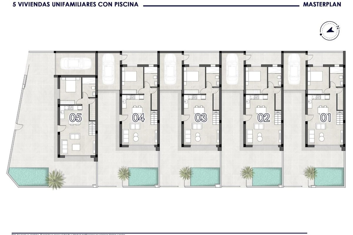 New Build Semi-Detached Villas with Private Pool in San Pedro del PinatarModern Homes in a Prime LocationThis exclusive development of 5 semi-detached villas is located in San Pedro del Pinatar, a vibrant coastal town in the Costa Cálida. Positioned near the municipal sports center, within walking distance to the town center, and just 3.5 km from the beaches of the Mar Menor and Mediterranean, these homes offer the perfect blend of comfort, convenience, and Mediterranean lifestyle.Contemporary Design and Functional LayoutEach villa is distributed across two floors and designed with modern architecture, maximizing space and natural light. With 3 bedrooms and 2 bathrooms, these properties are ideal for families, holiday homes, or investment.Ground Floor: Open-plan kitchen connected to the bright living and dining area, one bedroom, one bathroom, a rear patio and direct access to the private garden with pool.First Floor: Two additional bedrooms, one bathroom, and a spacious terrace with access to the private rooftop solarium, perfect for sunbathing or entertaining.Quality Finishes and ComfortThe villas are delivered with high-quality specifications and thoughtful details to ensure modern living:Fully furnished and equipped kitchen with appliancesPrivate swimming pool and gardenRooftop solarium for year-round outdoor livingSummer kitchen includedInterior and exterior lighting packageClosed private garageSan Pedro del Pinatar - Lifestyle and SurroundingsSan Pedro del Pinatar is renowned for its year-round sunshine, sandy beaches, and natural landscapes such as the famous Salinas y Arenales Natural Park. The town offers all essential services, including shops, supermarkets, restaurants, health centers, and sports facilities, making it an excellent place for both permanent living and holidays.Distances to key points of interest:Beaches of the Mar Menor - 3.5 kmDos Mares Shopping Center - 5 kmLo Pagán Marina - 4 kmRoda Golf - 8 kmMurcia Airport (Corvera) - 35 kmAlicante Airport – 75 kmSecure Your New Home by the SeaThese new build semi-detached villas in San Pedro del Pinatar combine modern design, high-quality finishes, and a privileged location close to the sea and all amenities.Contact us today for more information or to schedule a viewing and take the first step toward your dream Mediterranean home.~
